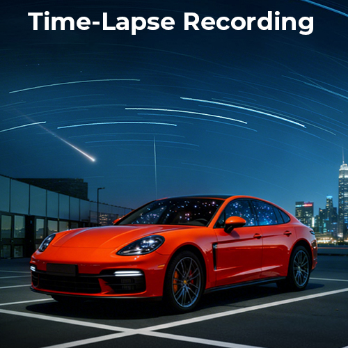 • Time-Lapse Mode – Records continuously at low bitrate for 8/16/24 hours to save storage space.