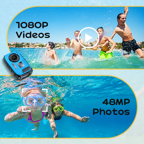 Our underwater camera for snorkeling captures stunning underwater details—from colorful marine life to playful pool moments—in crystal-clear 48MP photos and smooth 1080P video. Perfect for snorkeling adventures or swim meets.