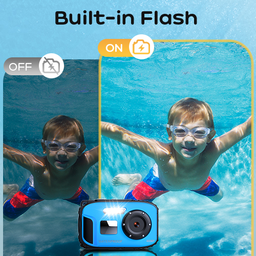 Thanks to the built-in flash, your child's photos stay sharp and bright—even in low light, cloudy water, or at dusk. No more dull or blurry images—just great-looking memories, every time.