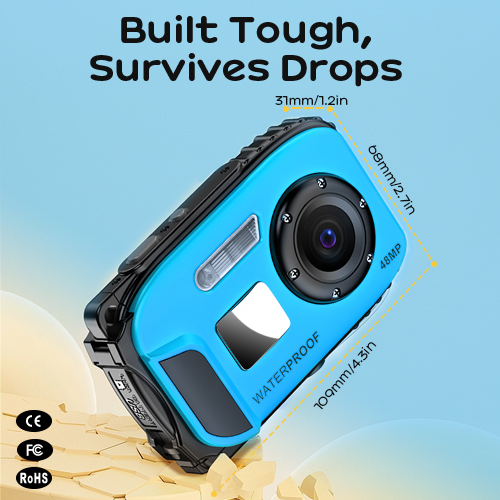 I took this waterproof camera snorkeling last weekend, and it's fantastic. The 1080p video and 48MP photos are crisp, even underwater colors pop beautifully. The 16× zoom is a game-changer for capturing close-up sea life from a distance. The fill lights helped brighten darker areas. It felt sturdy and waterproof down to about 16 ft without any issues.