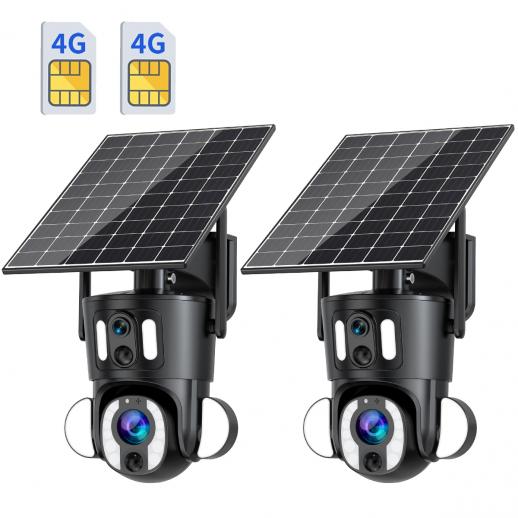 4G Security Camera Solar + Battery, Dual-Lens & 10X Optical Zoom 2PCS for Outdoor Surveillance, Farms, Factories, Construction Sites, No WiFi