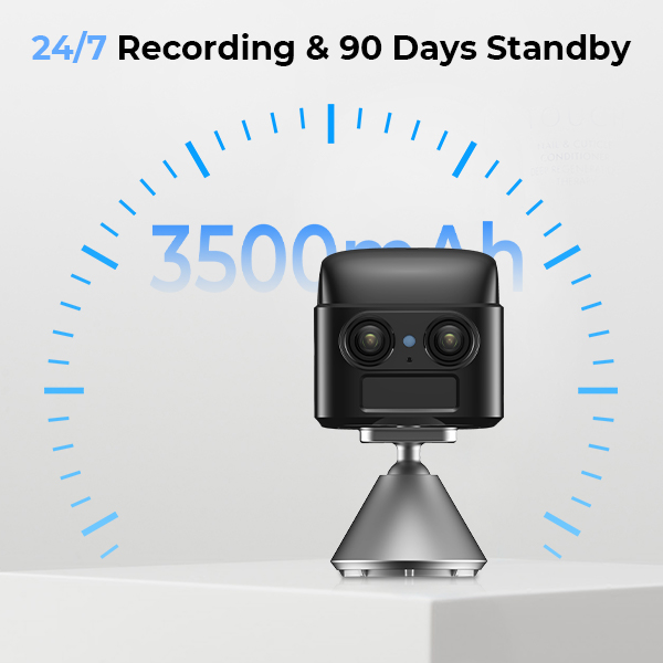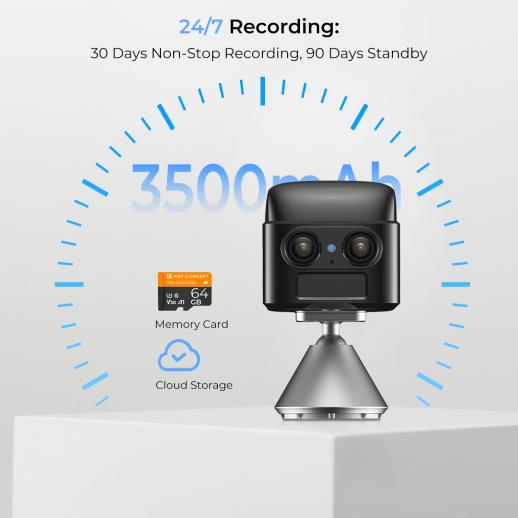 - Ever worried about missing a moment when your camera dies or stops recording? Our 4G Wireless Camera solves both with 24/7 continuous recording and a massive 3500mAh battery that lasts 90 DAYS ON STANDBY—no daily charging, no gaps in protection.