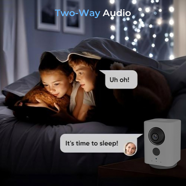 - Our nanny cam features a noiseless microphone and speaker for instant two-way communication. Easily chat with families, pets, visitors, or deter unwanted visitors using your phone, ensuring you stay connected and protect your property, wherever you are.