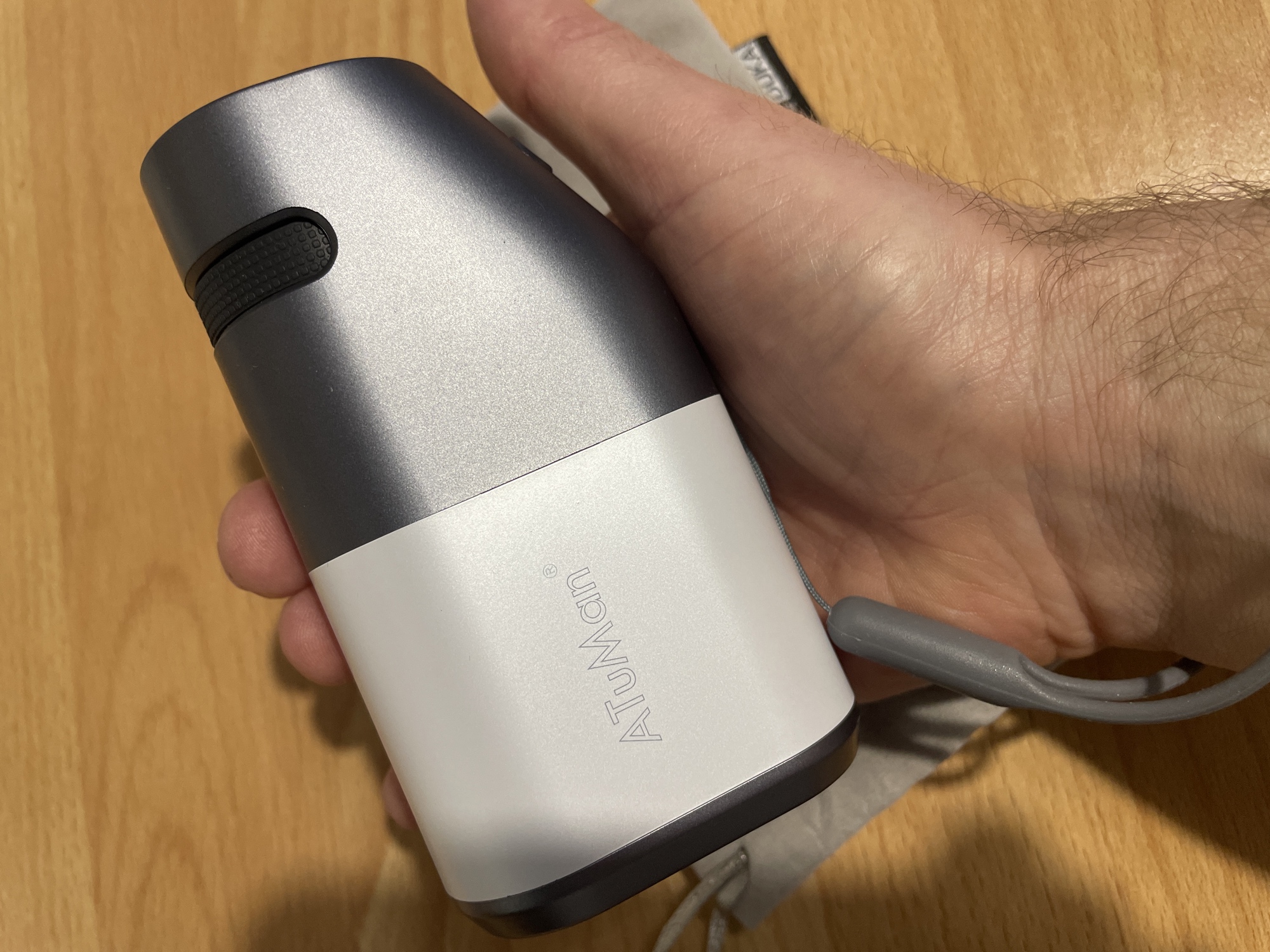 I've used several rangefinders on my travels and this one is by far the easiest to use with one hand. The focus wheel at the top of the rangefinder can be adjusted with just your index finger, while the meter and mode buttons at the bottom can be operated entirely with your thumb. This one-handed operation is particularly useful for eyeglass wearers like me, as it virtually eliminates the common smudges that result from having to adjust the image with one hand while trying to steady the rangefinder with the other. The interface is simple and intuitive, with discrete functions to control distance, angle, and speed. The accuracy is among the best I've seen, adjustable to tenths of a degree. I like the lock-on mode that locks on a specific target. USB-C charging is a great convenience for me. It can be charged anywhere - at home, in the car, in a coffee shop, etc. I really appreciate not having to keep changing batteries. Overall, the picture is clear and true to color, ideal for either watching the game or just enjoying the scenery. The range finder is extremely compact and lightweight, yet robust. It comes with a protective cloth pouch and is small enough to fit in a pocket, backpack or gear bag.