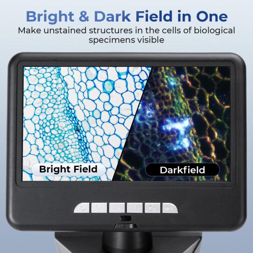 - * Brightfield & Darkfield 2-in-1: This darkfield microscope features a built-in darkfield diaphragm for effortless switching between brightfield and darkfield observation. Watch unstained specimens like living bacteria, blood cells, and crystals pop with stunning contrast against a dark background — ideal for life science research, cell biology, microbiology, and materials science.