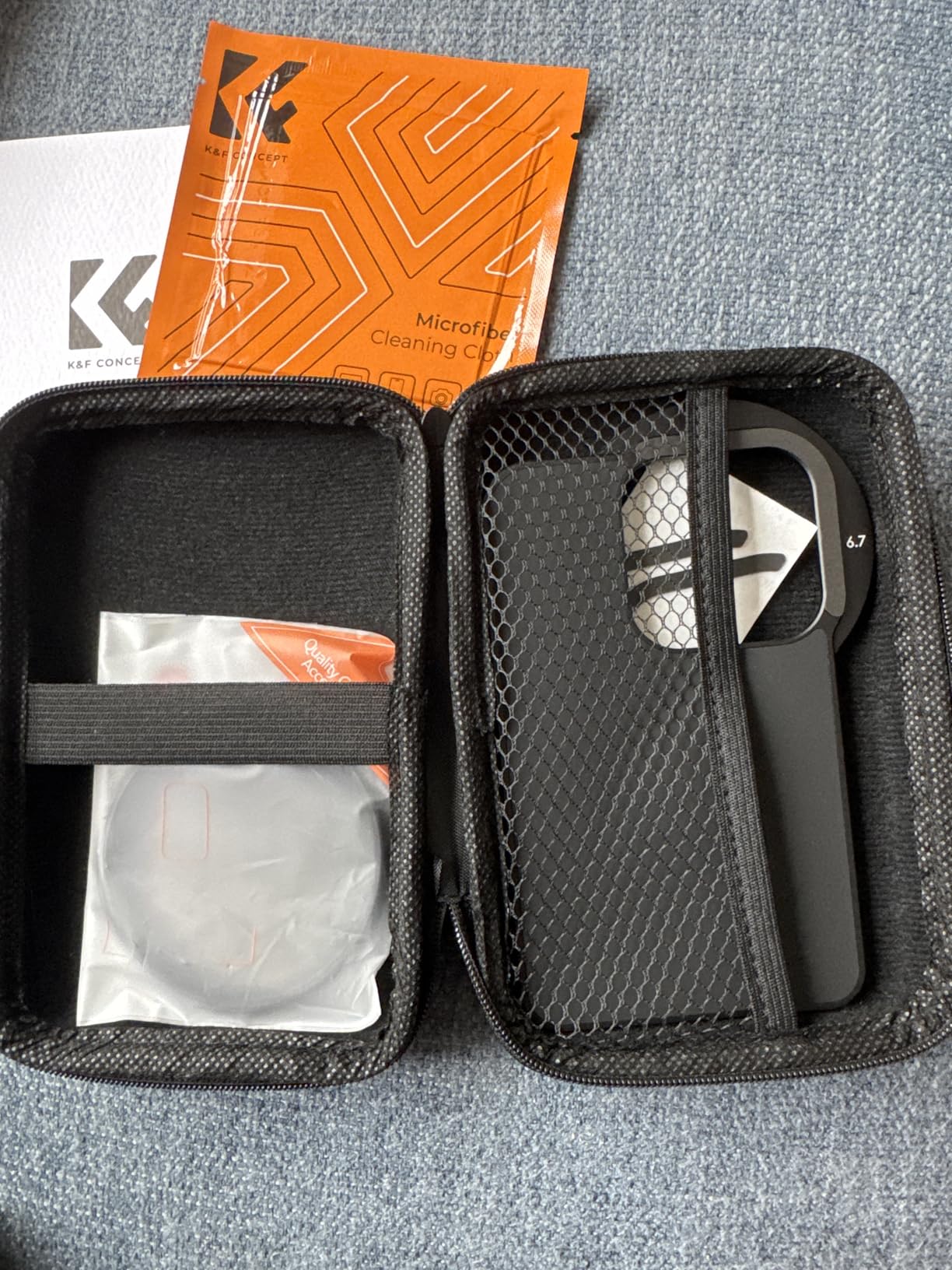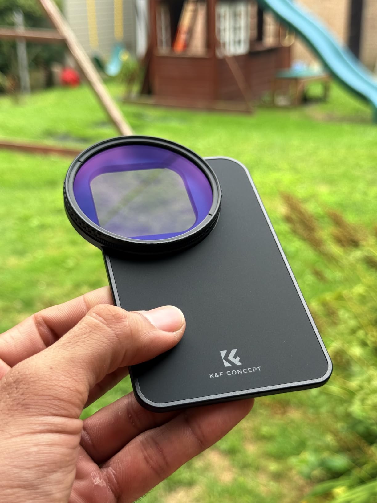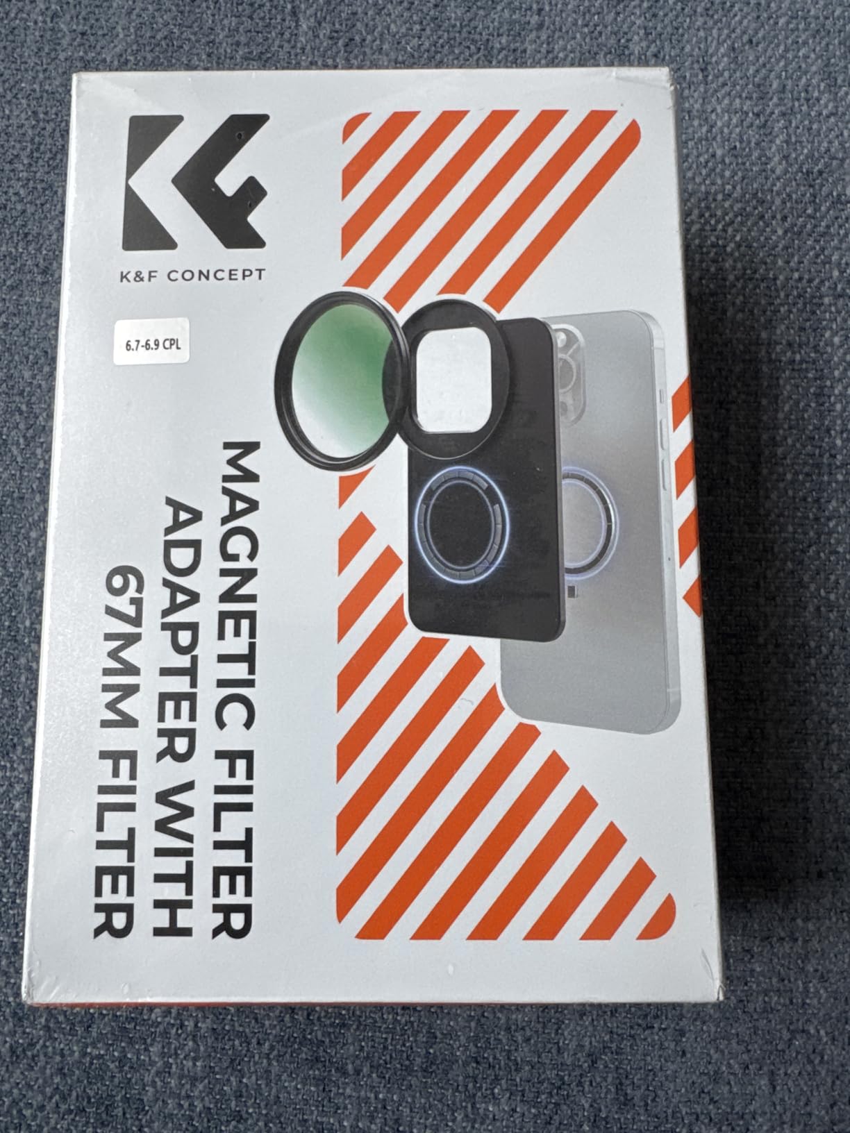 When I was offered the 'K&F Concept 6.7 inch Magnetic Lens Filter Adapter', with a matching CPL filter, I simply had to say yes as a dedicated amateur photographer. The set comes in one of those dreadful smelling zipped 'boxes' that would actually be very handy. But you have to ventilate them somewhere for weeks before you no longer have the feeling that you are poisoning yourself with them. But then it is safe storage for the adapter and filter, which you can always leave on. For the sake of completeness, it should be mentioned that a shrink-wrapped microfiber cloth is also included. The 'MagSafe filter holder' is easy to describe. It sticks magnetically to the back of the cell phone and has a rectangular cutout just above the lenses. There is a 67mm filter thread in the middle of it, so that a filter screwed onto it covers all 3 iPhone cameras. It may have to be said that a CPL filter is pretty much the only optical filter on a cell phone that is still useful. It removes reflections that can't be solved with post-processing. Even if you get the reflections retouched away, what's underneath is still 'lost. ' You simply have to work with a CPL filter on or on the water to find out what I mean. It is almost magical when you can suddenly see 2-3 meters at the bottom of a clear lake, where the eye can only see a reflecting surface. Such a 'Circular Polarizing Lens' (CPL) creates a nice effect of additional depth even against the blue sky at certain times of day. For all these reasons, at least I will hardly screw any other filter onto this holder or even use it on my mobile phone. There is one small downside and that is the size of the lens cutout. It only fits the exact dimensions of mobile phone lenses without a protective case. However, most protective cases have a 'protective edge' around the lenses, which is too large for the cutout in the holder. Only a few millimeters are missing and it wouldn't be a problem if the cutout was larger by these few millimeters. I'm seriously considering whether I should go for it with a file. As it is, I either have to remove the protective cover or the MagSafe holder doesn't sit flat. This works if you use the adapter alone, but not if you want to continue using a MagSafe holder for your mobile phone, for example. That would work well because the filter holder at the back is itself magnetic. But if he doesn't lie flat, the cell phone doesn't hold well. My conclusion: The 'K&F Concept 6.7 inch Magnetic Lens Filter Adapter' is an excellent, practical product despite the small weakness with the cutout. You can safely place a filter on the mobile phone with a flick of the wrist, as opposed to any clamp. The magnet is very strong and the slightly rubberized back makes the holder on the mobile phone non-slip. I like to give the 'K&F Concept 6.7 inch Magnetic Lens Filter Adapter' 5 stars and a 100% purchase recommendation.