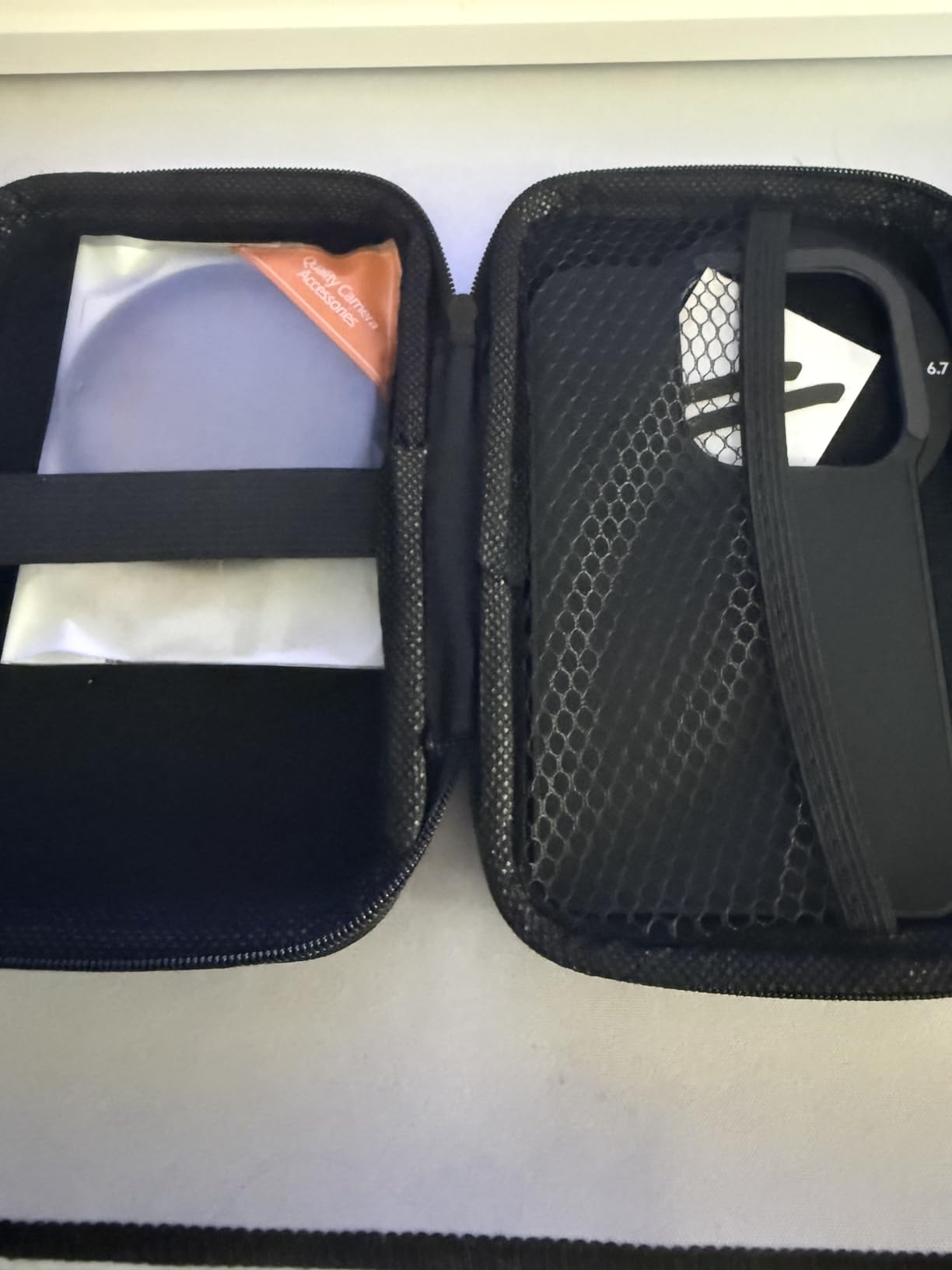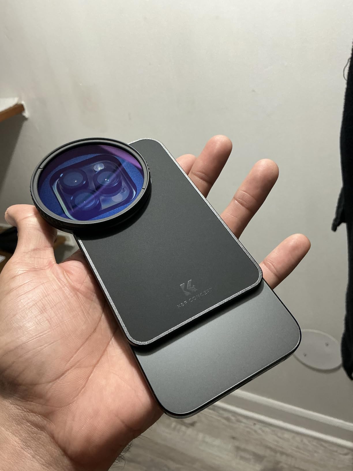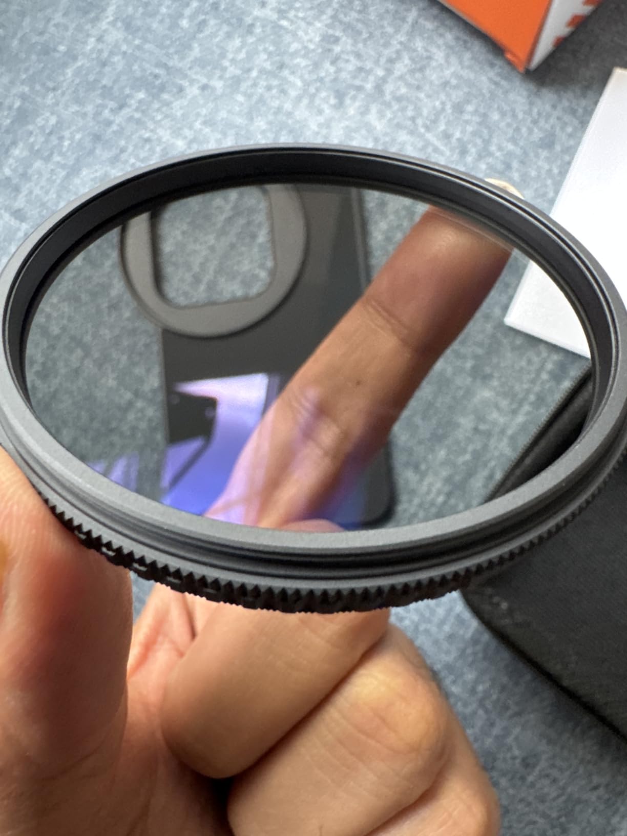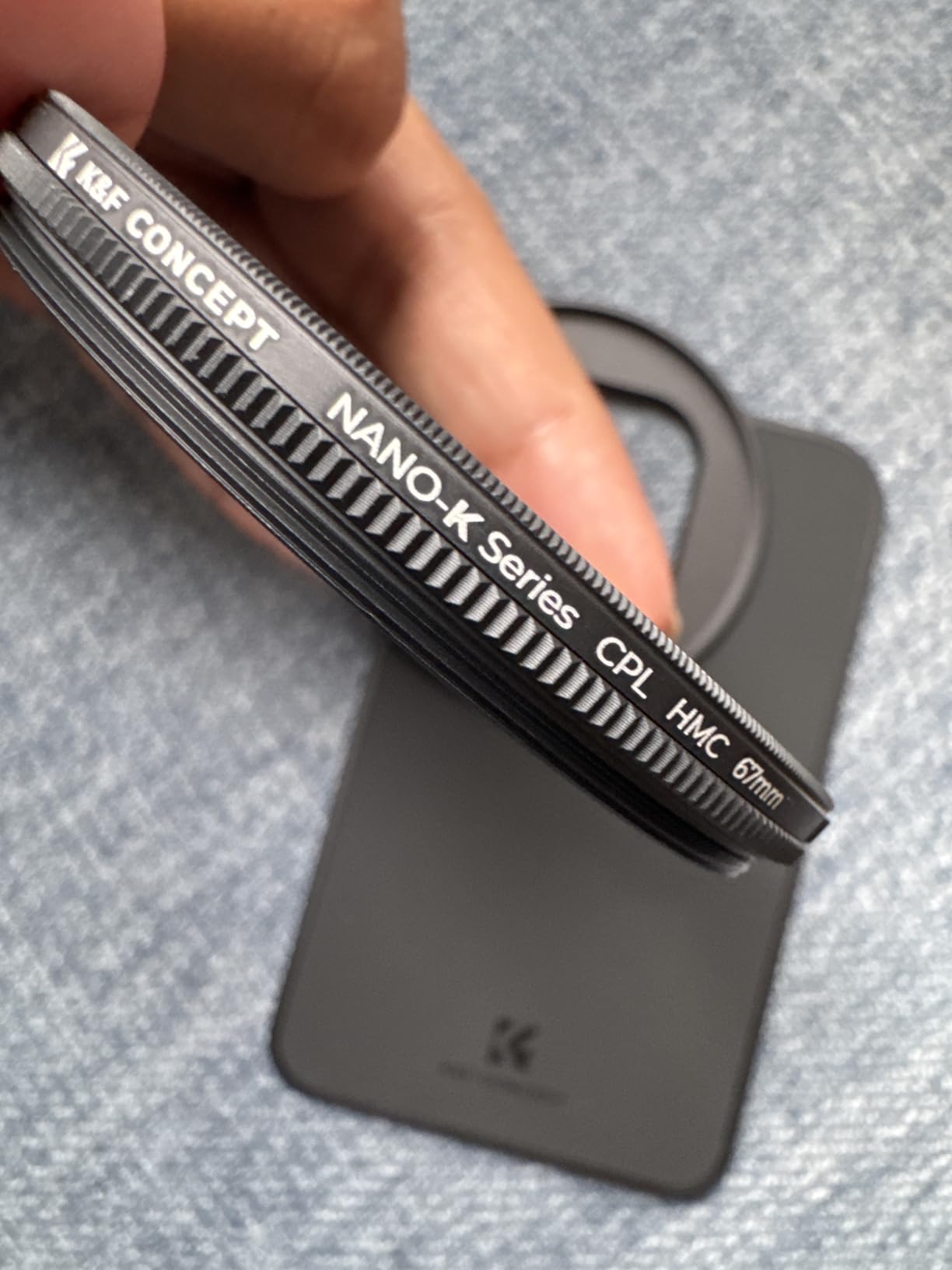 When I was offered the 'K&F Concept 6.7 inch Magnetic Lens Filter Adapter', with a matching CPL filter, I simply had to say yes as a dedicated amateur photographer. The set comes in one of those dreadful smelling zipped 'boxes' that would actually be very handy. But you have to ventilate them somewhere for weeks before you no longer have the feeling that you are poisoning yourself with them. But then it is safe storage for the adapter and filter, which you can always leave on. For the sake of completeness, it should be mentioned that a shrink-wrapped microfiber cloth is also included. The 'MagSafe filter holder' is easy to describe. It sticks magnetically to the back of the cell phone and has a rectangular cutout just above the lenses. There is a 67mm filter thread in the middle of it, so that a filter screwed onto it covers all 3 iPhone cameras. It may have to be said that a CPL filter is pretty much the only optical filter on a cell phone that is still useful. It removes reflections that can't be solved with post-processing. Even if you get the reflections retouched away, what's underneath is still 'lost. ' You simply have to work with a CPL filter on or on the water to find out what I mean. It is almost magical when you can suddenly see 2-3 meters at the bottom of a clear lake, where the eye can only see a reflecting surface. Such a 'Circular Polarizing Lens' (CPL) creates a nice effect of additional depth even against the blue sky at certain times of day. For all these reasons, at least I will hardly screw any other filter onto this holder or even use it on my mobile phone. There is one small downside and that is the size of the lens cutout. It only fits the exact dimensions of mobile phone lenses without a protective case. However, most protective cases have a 'protective edge' around the lenses, which is too large for the cutout in the holder. Only a few millimeters are missing and it wouldn't be a problem if the cutout was larger by these few millimeters. I'm seriously considering whether I should go for it with a file. As it is, I either have to remove the protective cover or the MagSafe holder doesn't sit flat. This works if you use the adapter alone, but not if you want to continue using a MagSafe holder for your mobile phone, for example. That would work well because the filter holder at the back is itself magnetic. But if he doesn't lie flat, the cell phone doesn't hold well. My conclusion: The 'K&F Concept 6.7 inch Magnetic Lens Filter Adapter' is an excellent, practical product despite the small weakness with the cutout. You can safely place a filter on the mobile phone with a flick of the wrist, as opposed to any clamp. The magnet is very strong and the slightly rubberized back makes the holder on the mobile phone non-slip. I like to give the 'K&F Concept 6.7 inch Magnetic Lens Filter Adapter' 5 stars and a 100% purchase recommendation.