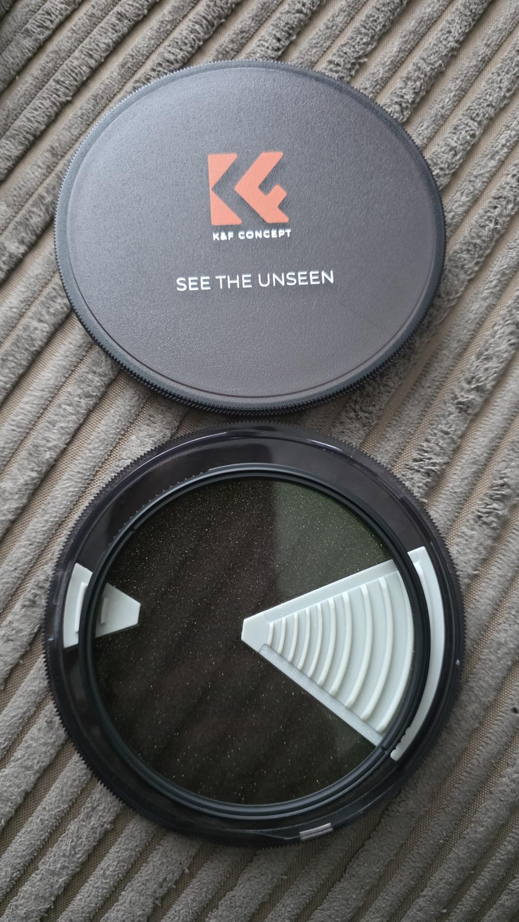 The filter arrived in a plastic wrapped cardboard box with the filter inside that round plastic case that K&F often uses. It arrived in perfect condition.