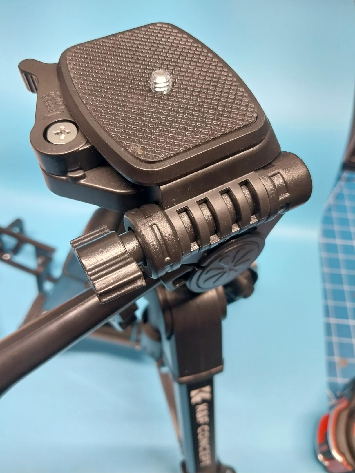 This desktop tripod has so many great attributes. The smaller footprint doesn't take much space so it's easy to use in limited space. The legs have 2 parts of extension and can level on uneven surfaces. The feet rotate to provide great grip. I do wish the feet moved more freely. The small crank allows for the center rod to raise. The legs and center rod are made of aluminum. The plastic head is lighter weight and moves very well, I can swivel and tilt as needed and with ease. There's also a bubble level that's helpful. The mounting plate with the 1/4" screw is removable. This kit also comes with a phone holder for both landscape or portrait layout. It mounts using the 1/4" screw. This tripod even comes with a carrying bag, nice add on. Overall, this tripod is well made, works great and is priced well.