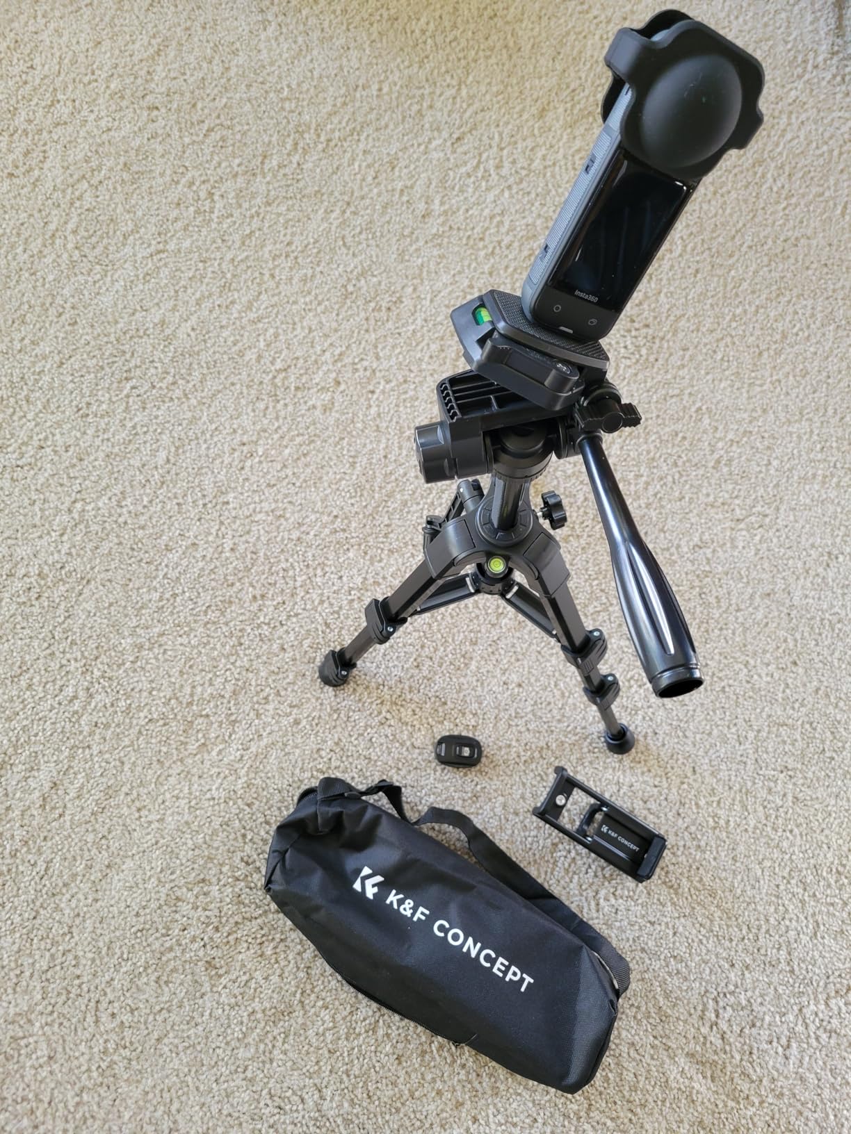 I got this tripod for the occasional use with my 360 camera. (Added for reference along with the rulers). I am no professional as you can tell from my pictures, but maybe, just maybe, this can help me get better. Ha.Anyhoo, this has a lot of features I wasn't expecting. Maybe those are standard now, but you can get the quick release plate to adjust in pretty much any angle I would think you could want. There are even a couple levels built in to help you out. The hook on the bottom for your weight (not included) is a nice touch if you have heavier cameras or awkward arrangements. This has a phone holder that gives you a couple options for mounting too. I did not try out the included remote, so no witty humor on that one.The tripod is lightweight and made mostly, if not all of plastic. I wouldn't go tossing this around any more than you would with your cameras. That said, it also shouldn't be much of a burden to take with you. I picture this to be of good use for desktops or close up still photography. Perhaps food. Mmmmmm.It all packs up in the included bag easily.