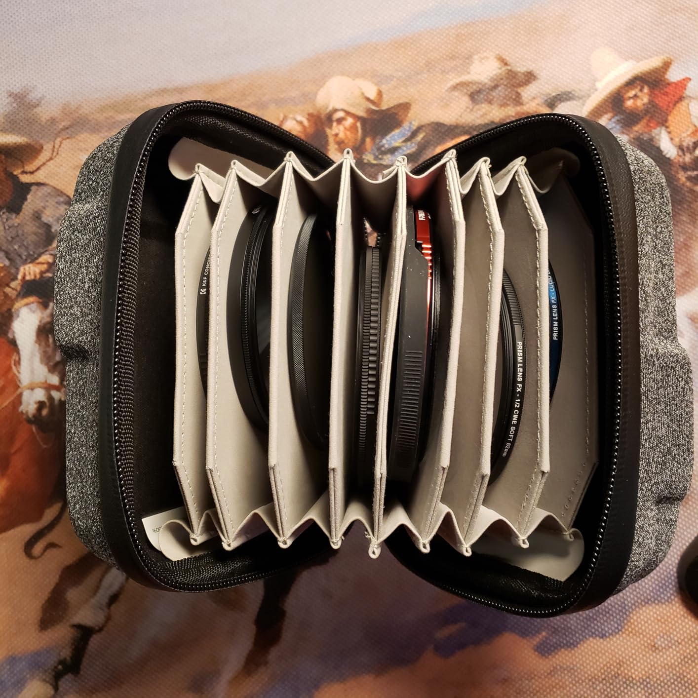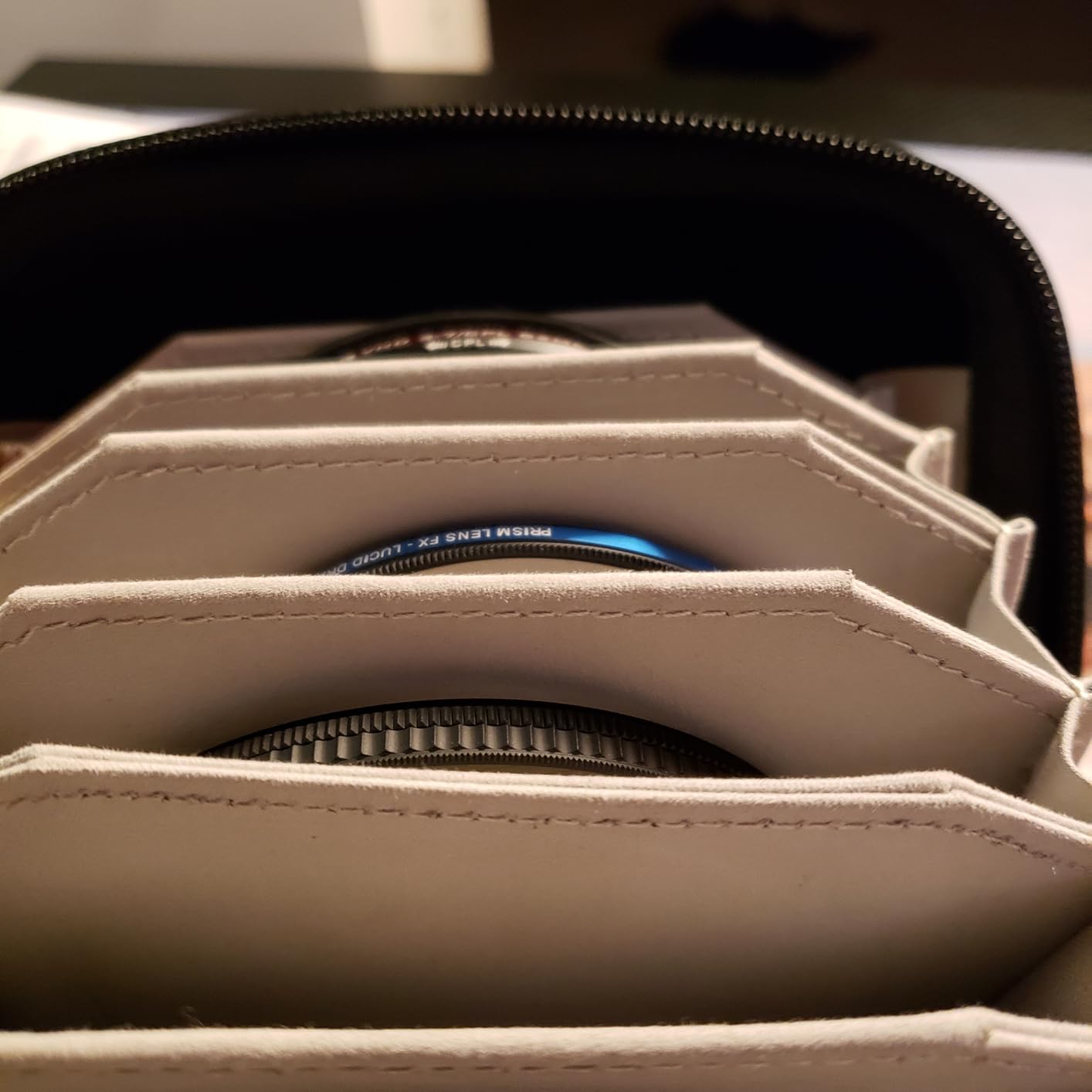 Solid storage case that holds and separates filters well. It does get a little crowded depending on the thickness of your filters, but I was able to put a whole 10 set of ND/UV/CPL filters in without issues. It did get more noticably tougher to close and slightly bulkier when putting creative prism type filters in, but those tend to be 2x~3x thicker than the standard filter.