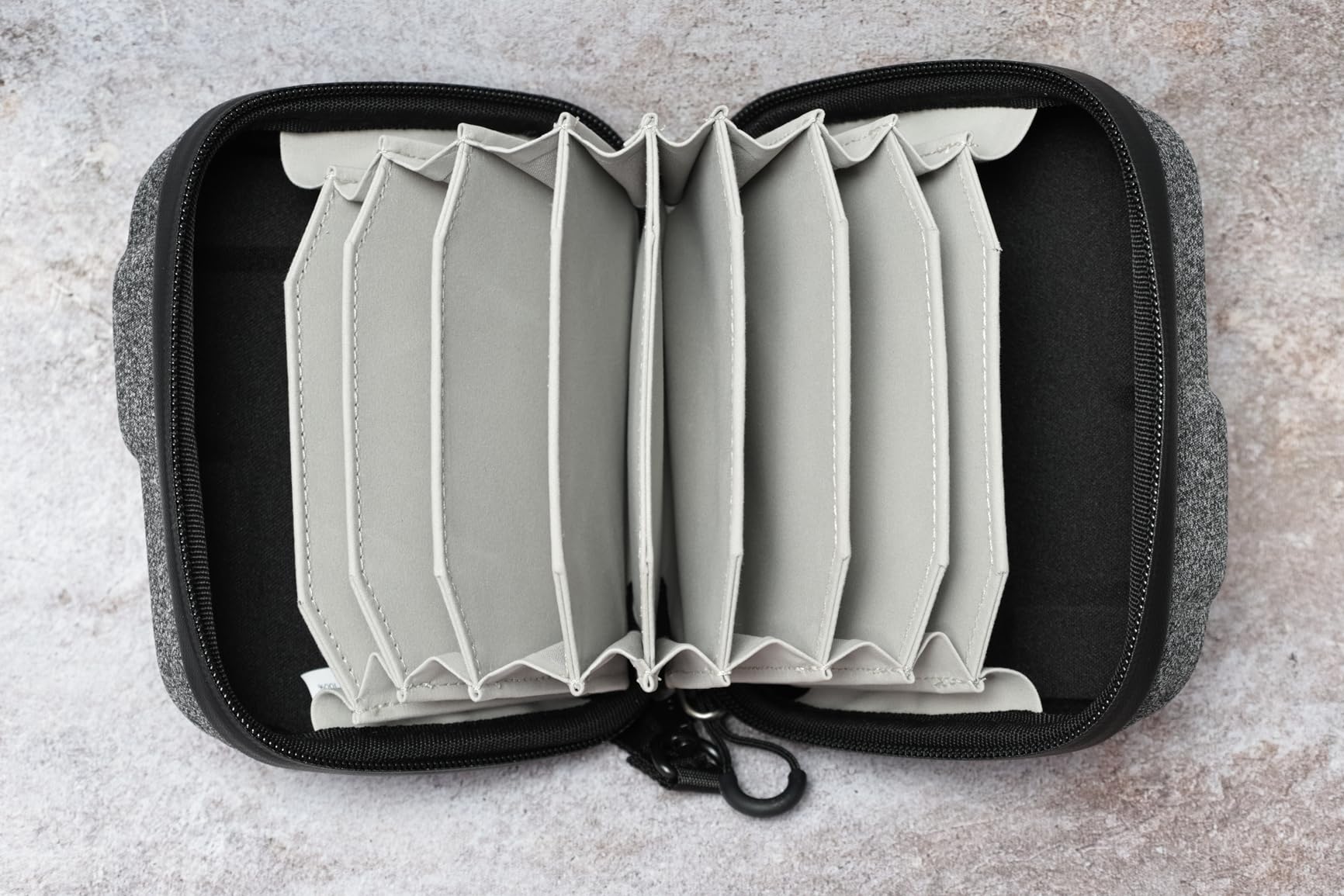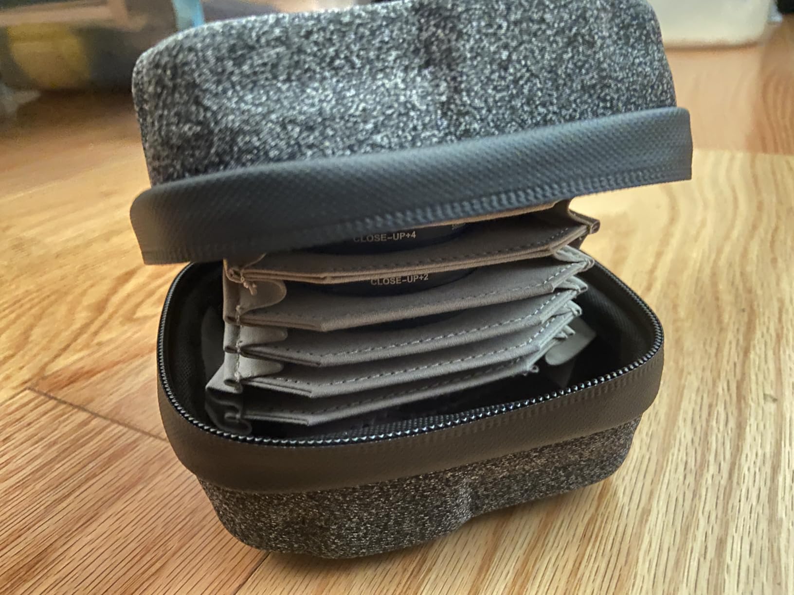 This 10 in 1 Lens Filter Case from K&F Concept is a good solution for storing lens filters. The hard shell has a little bit of flex while being firm enough to provide good protection. The interior envelopes feel like soft suede and the compartment dividers form a buffer between filters. Opening the case makes it fan out like an accordion until the case lays flat allowing a good view of the filters, making it easy to grab the one you want.