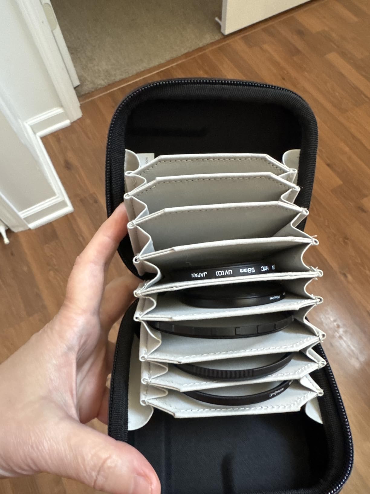 K&F makes great, affordable camera gear, and this filter case is no exception. It's sturdy, with a hard shell and soft microfiber inside to protect up to 10 filters (82mm, under 6.5mm thick). Filters stay organized and easy to grab thanks to the bright interior. Compact, lightweight, and fits perfectly in my camera bag. Works great for ND, CPL, UV, and more. Simple, durable, and does exactly what you need.