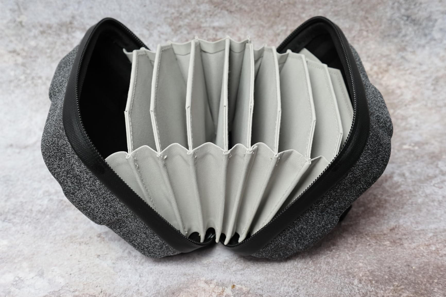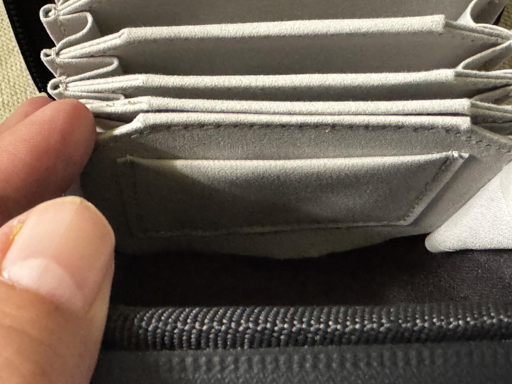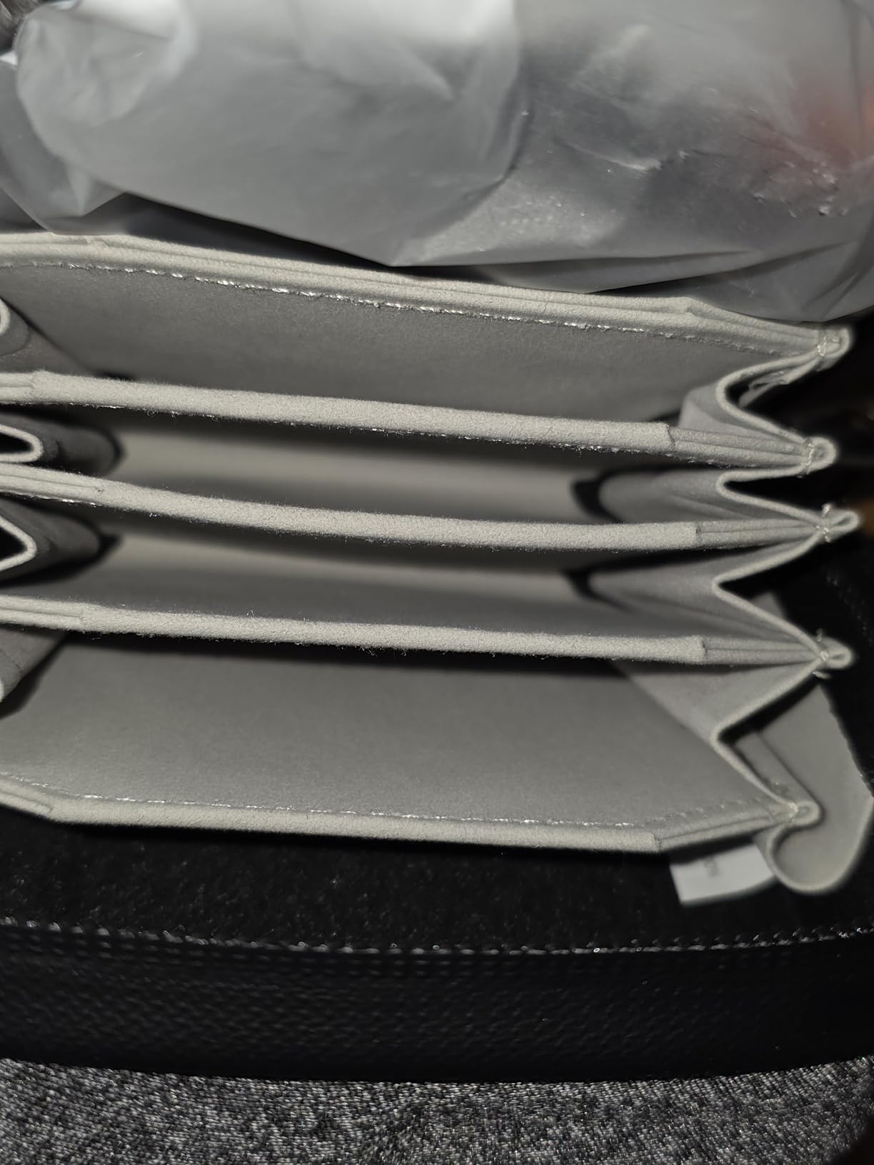 I also have noticed that 2 out of the 10 pockets are considered the outsides of the padding. This material is just as soft (or close to it) as the insert itself, however, there is a lot of extra room for those pockets once it's fanned out. This can be a bit deceiving in leading you to think you can stuff extra items in there. The problem is when you try to close it you realize you can't. I just treat these as normal filter spots or a place for a lens cap and cloth. Nothing too bulky so it closes without issue.