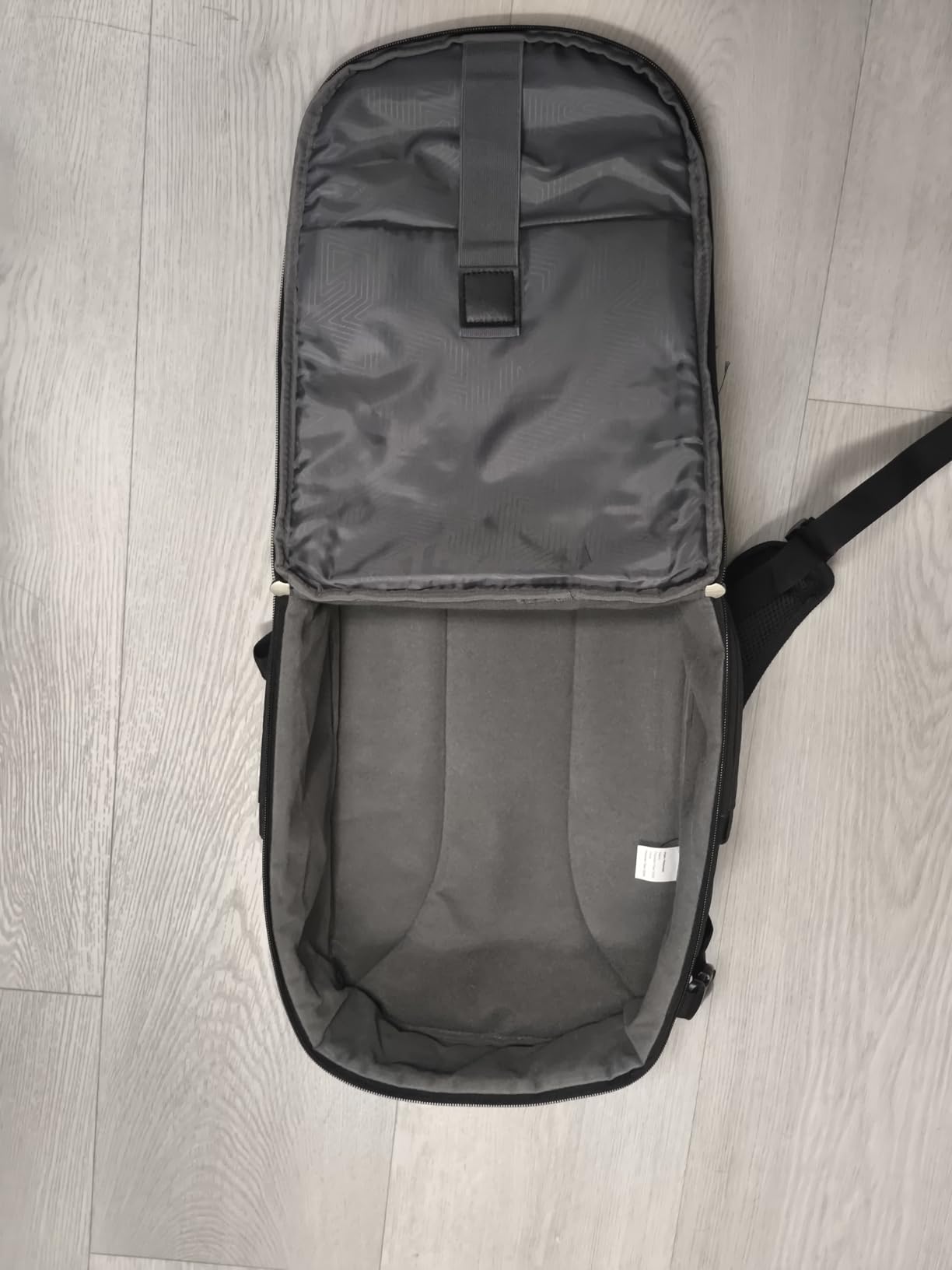 As for the materials, they seem very good to me: the zippers slide smoothly, the exterior fabric seems durable, and it also has padded shoulder straps and a breathable back panel—essential features considering that photography gear can weigh quite a bit, so comfort is essential!