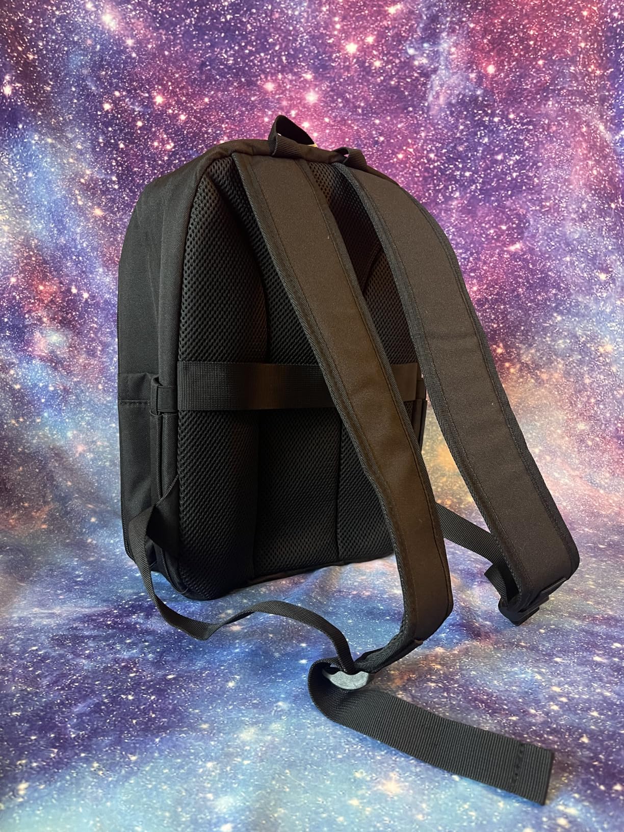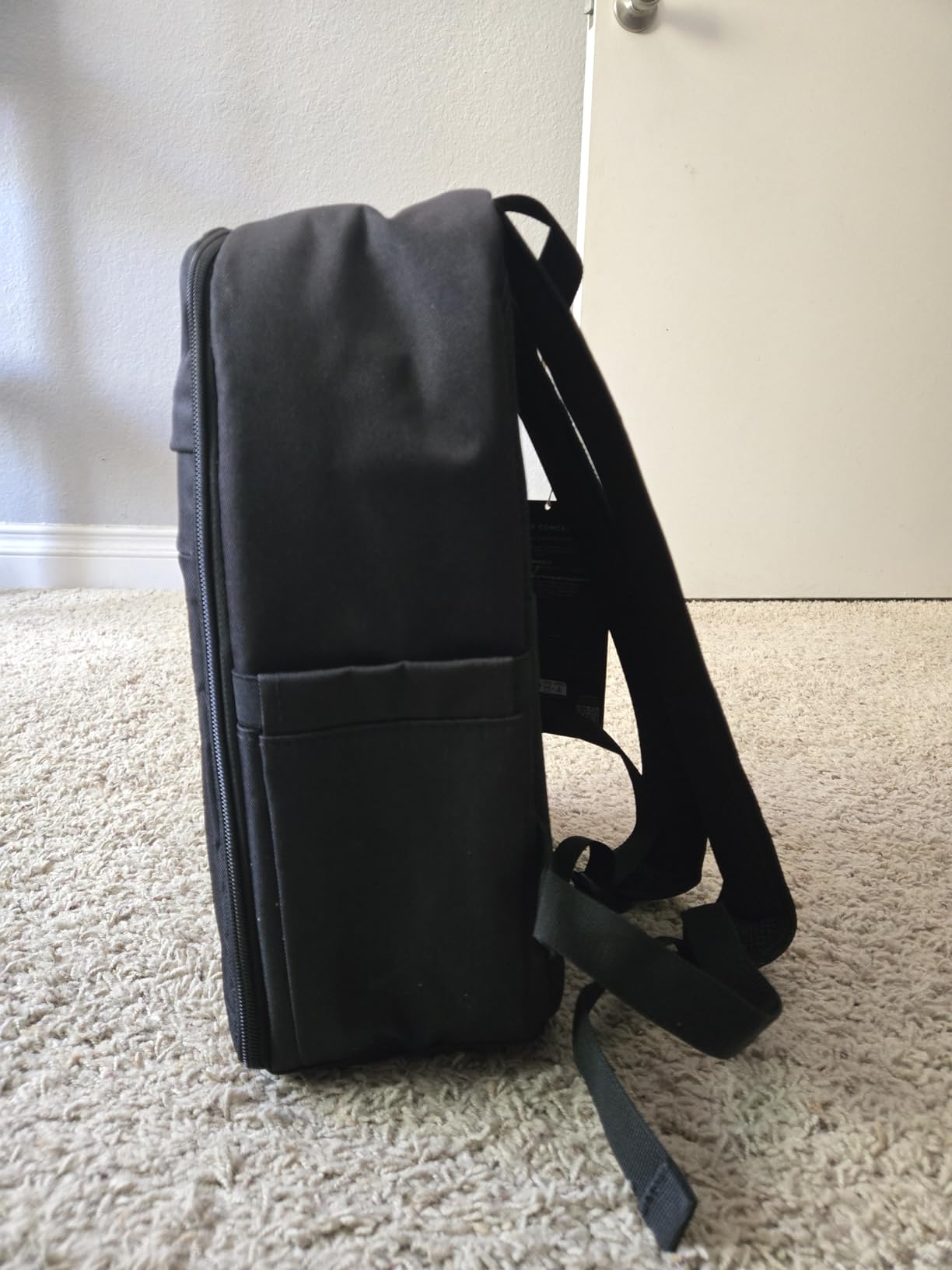 The sides are designed to hold a water bottle and a tripod, while the front has two additional pockets for smaller items like a phone, wallet, SD cards, or even a book. On the back, there’s a strap to secure it to your suitcase handle. The backpack itself is lightweight and medium in size (15 inches tall and 11 inches wide) great for carrying around comfortably.