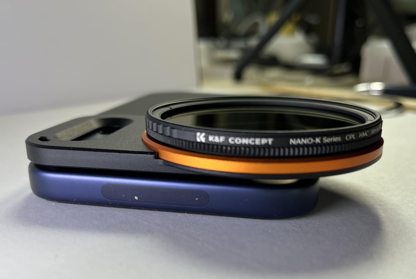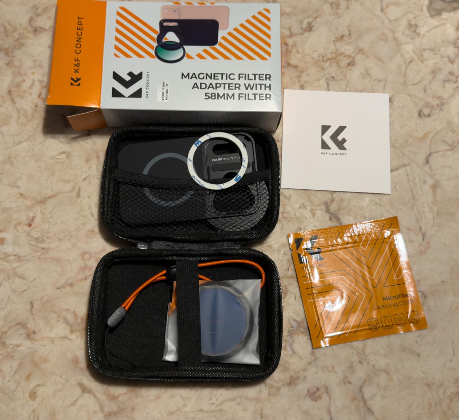 This K&F Concept magnetic filter adapter is an excellent solution for using real camera filters on the iPhone 17 Pro Max. The magnetic mount is very strong and snaps into place with confidence. It works best without a case, but it also performs extremely well with any MagSafe compatible case, which makes it flexible for everyday use. Once mounted, everything feels secure and well engineered.The filter screws directly into the adapter, creating a very solid and reliable mounting setup. The included ND 2–32 filter is high quality and versatile enough for most indoor and outdoor shooting situations. It uses standard 58mm filters and comes as a complete kit with a sturdy case, lanyard, magnetic ring, and cleaning cloth. The only thing missing is a cover for the filter itself, but overall this is a well designed, premium feeling setup that’s easy to recommend.