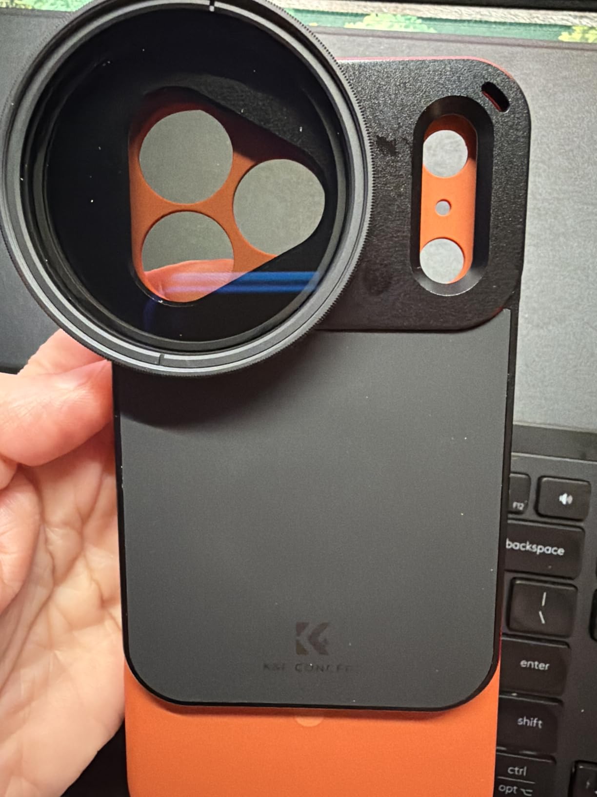 - * 【Compatible with iPhone 17 Pro Max, Precise Fit】K&F CONCEPT iPhone lens kit custom-developed precisely for the lens module of iPhone 17 Pro Max, with a triangular lens cutout and a rectangular deco cutout that fit the body. The design of a large flash opening + antenna hollowing prevents light leakage and does not block the signal. After wearing, the iphone camera lens and flash are not affected at all.