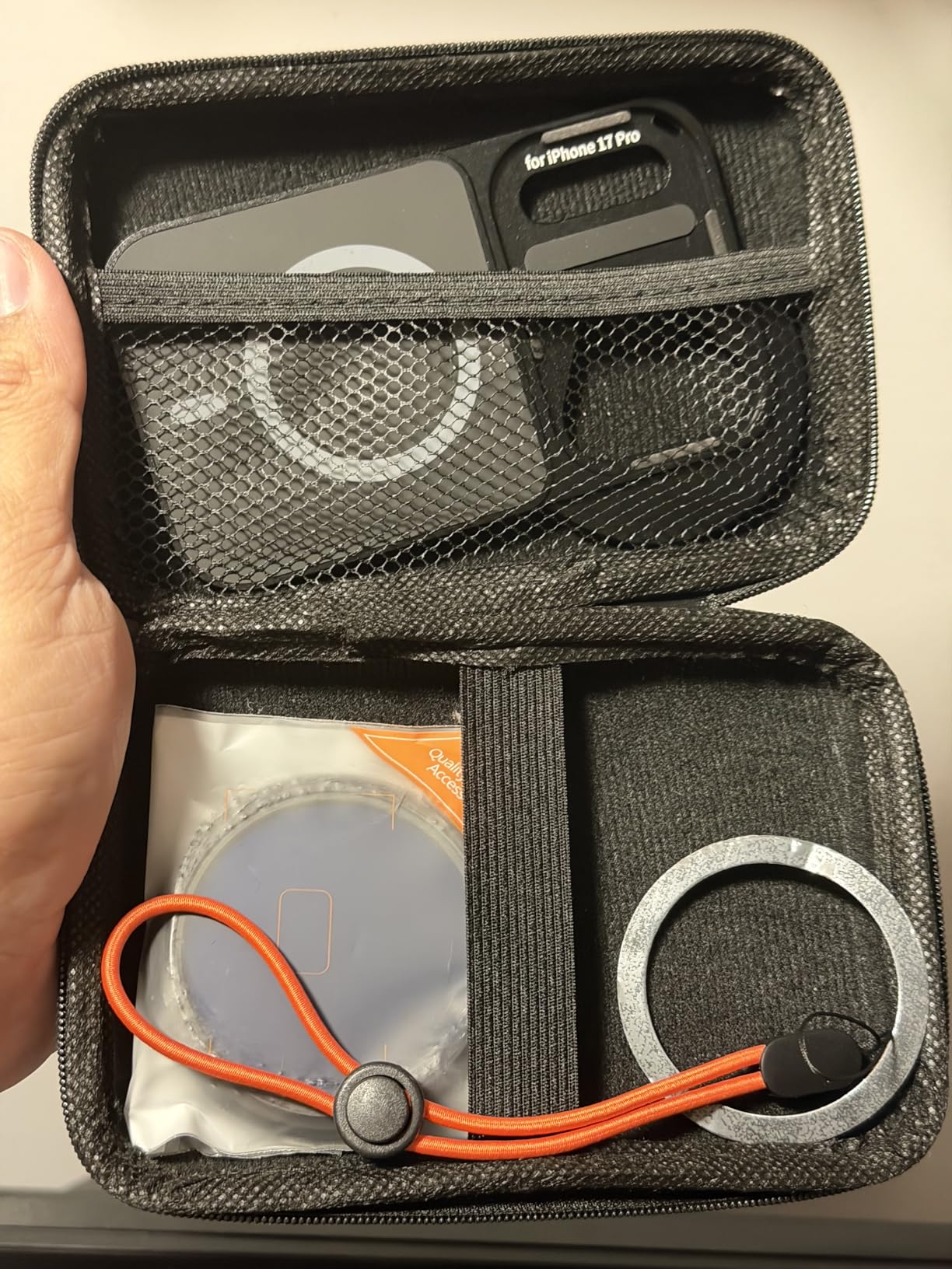 This K&F CONCEPT magnetic VND filter system fits the iPhone 17 Pro precisely and feels well thought out, with no interference to the camera, flash, or signal. The double-sided magnetic design is very strong and makes attaching the filter fast and convenient, while still allowing expansion with other magnetic accessories. The included ND2–32 variable filter delivers smooth light reduction and noticeably improves video results in brighter conditions. I appreciate the added protection from the silicone grip, shock-absorbing edges, and included lanyard, which makes handheld use feel more secure. Overall, it’s a versatile, high-quality kit that combines solid optics, strong mounting, and practical portability for mobile creators.