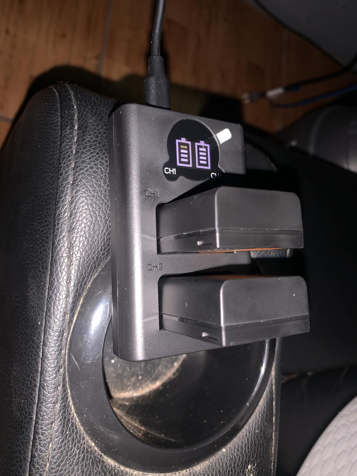 The charger has a compact size and I like that it has USB type c port and like this I don't have to carry with me any additional cables and I have noticed that a charges both batteries in roughly 2 hours which means that I can constantly use my camera.