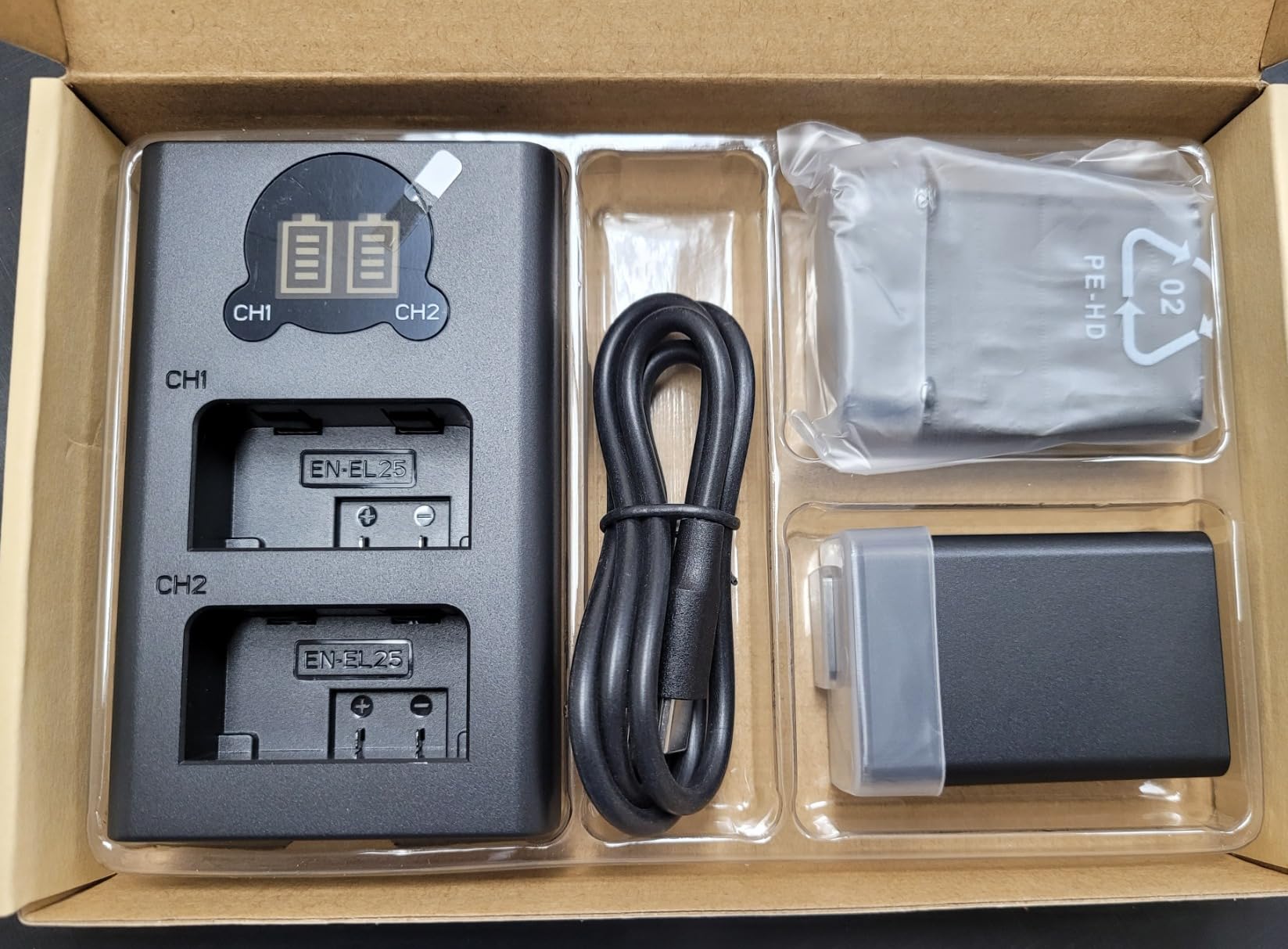 - * 【LCD Display Fast Charging】With smart display, you can check the current charging status in real time, and can charge two EN-EL25 batteries at the same time, with charging output of 8.7V/1x 700mA or 2 x 500mA.
