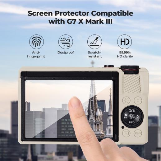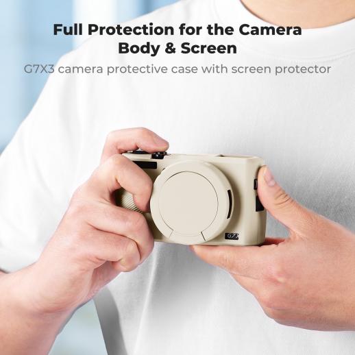 Canon G7X III Silicone Protective Case with Screen Protector Set, Anti-Scratch Shockproof Soft Skin Beige