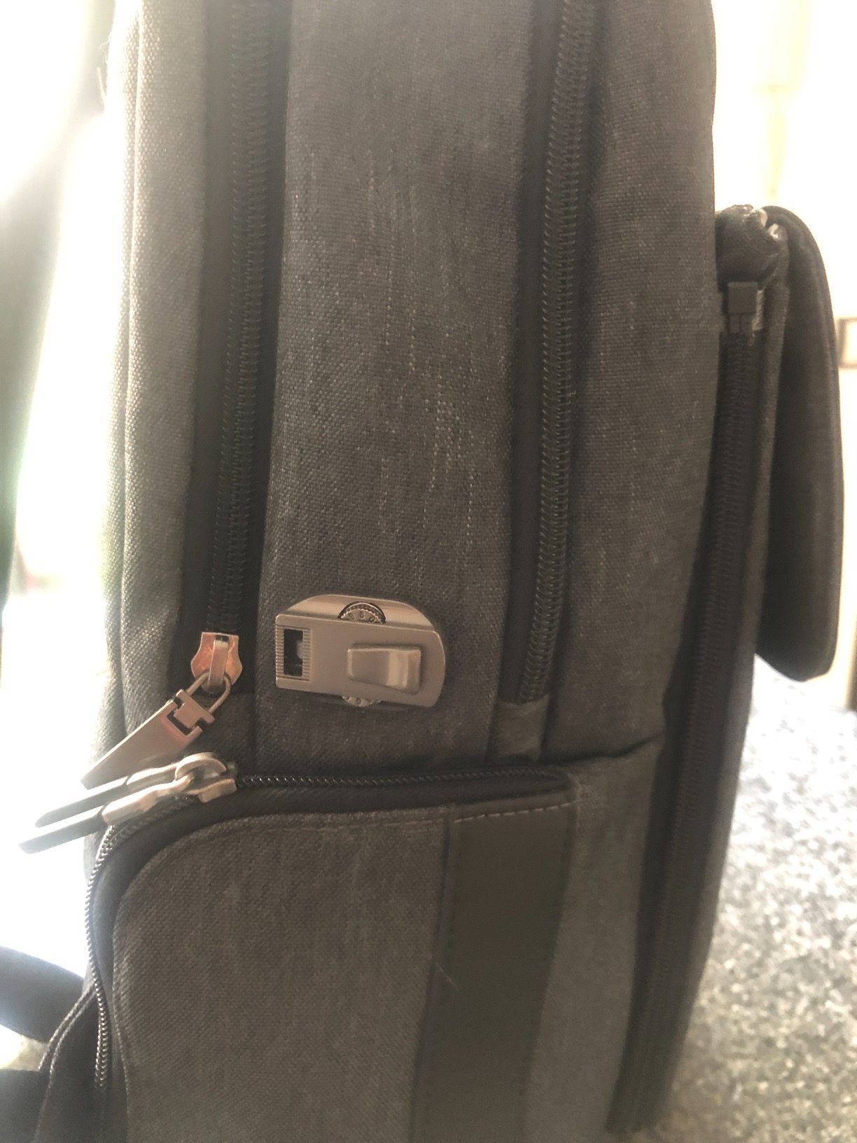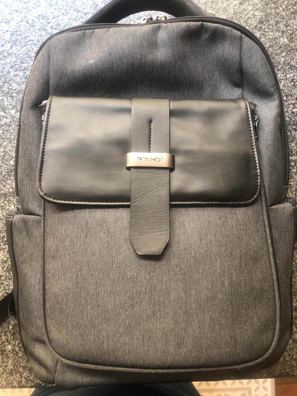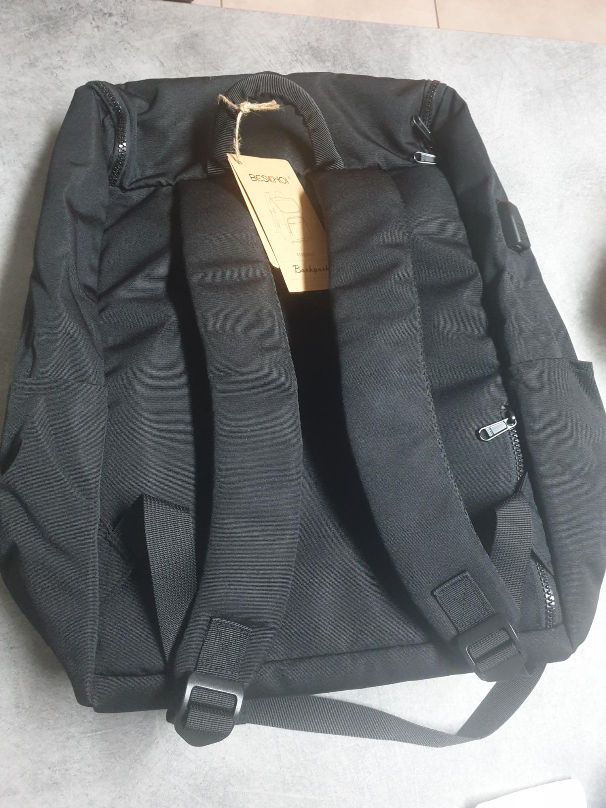 Great bag (quality). I am just very happy with my purchase for several reasons: Solid, USB port to connect my phone (fast charge with my battery). Several storage spaces to put my Mac, my charger, my battery, and for several other things. I highly recommend.