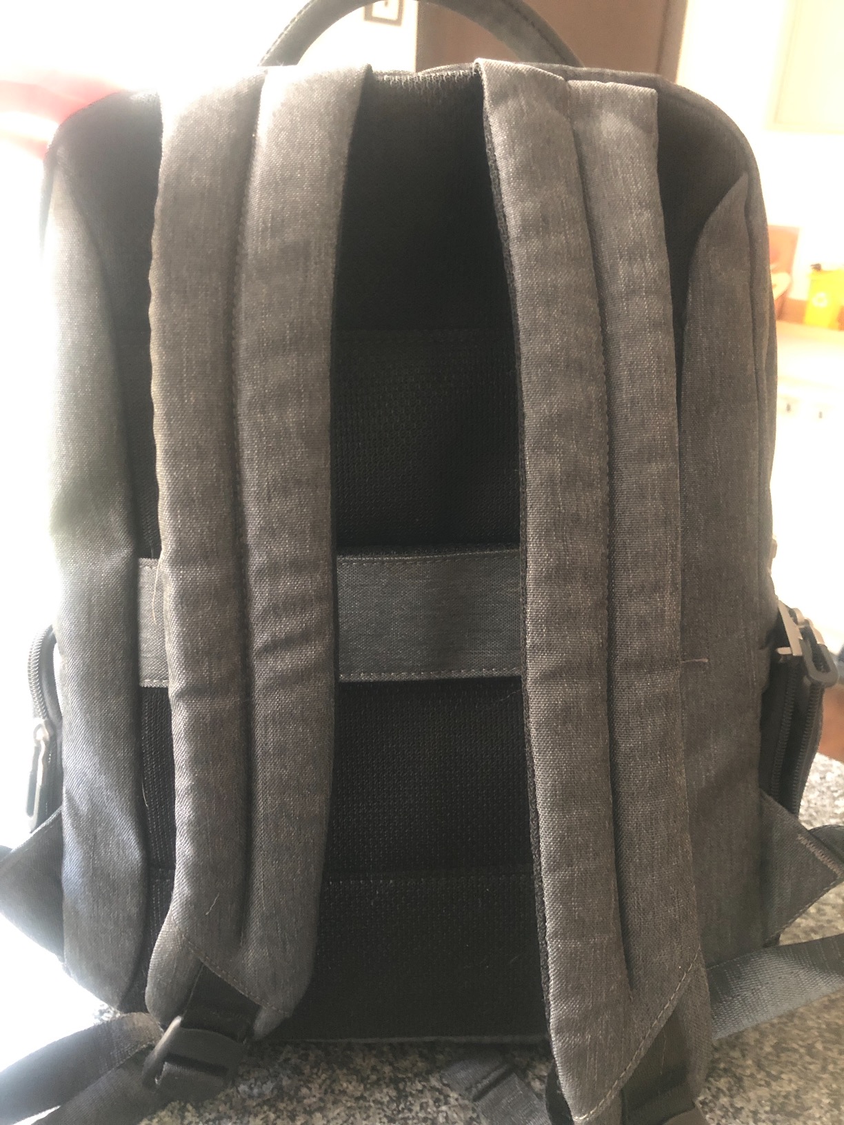 bought this backpack for my husband over a year ago. I bought him another one before that, which lasted two days. Buying this one was a great success! My husband needed a backpack that was comfortable, strong and stylish, and this one is not only stylish but also doesn't take up much space, making it perfect for wearing with a suit. Its durable material also helps when you use it every day, as you can see it is perfect, the edges are not worn or rubbed, the only thing that has worn down a little is the brand lettering, and that is normal considering that he has used it every day for work. The outside pocket can be used as a purse, a wonderful idea, when you want to leave the computer in the car and go out to dinner, not walk around, you just separate it and you have room to carry your wallet, phone and something else. I am happy, so much so that I have taken it off and I am using it myself... if it were in pink I would buy it for myself. The back is super soft.