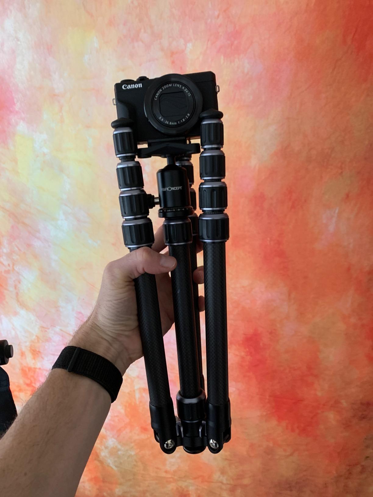 I don’t like to take my big gear when I travel, and I get nice photo performance out of my GX7, And with this tripod I can travel super light now. Hiking those 14ers with less than 3lbs of photo gear is going to be AMAZING! I could probably take my Sony Alpha 6300 instead with a zoom lens if I needed some reach.I wouldnt recommend big dslrs for this tripod. Stick to mirrorless or point and shoot.
