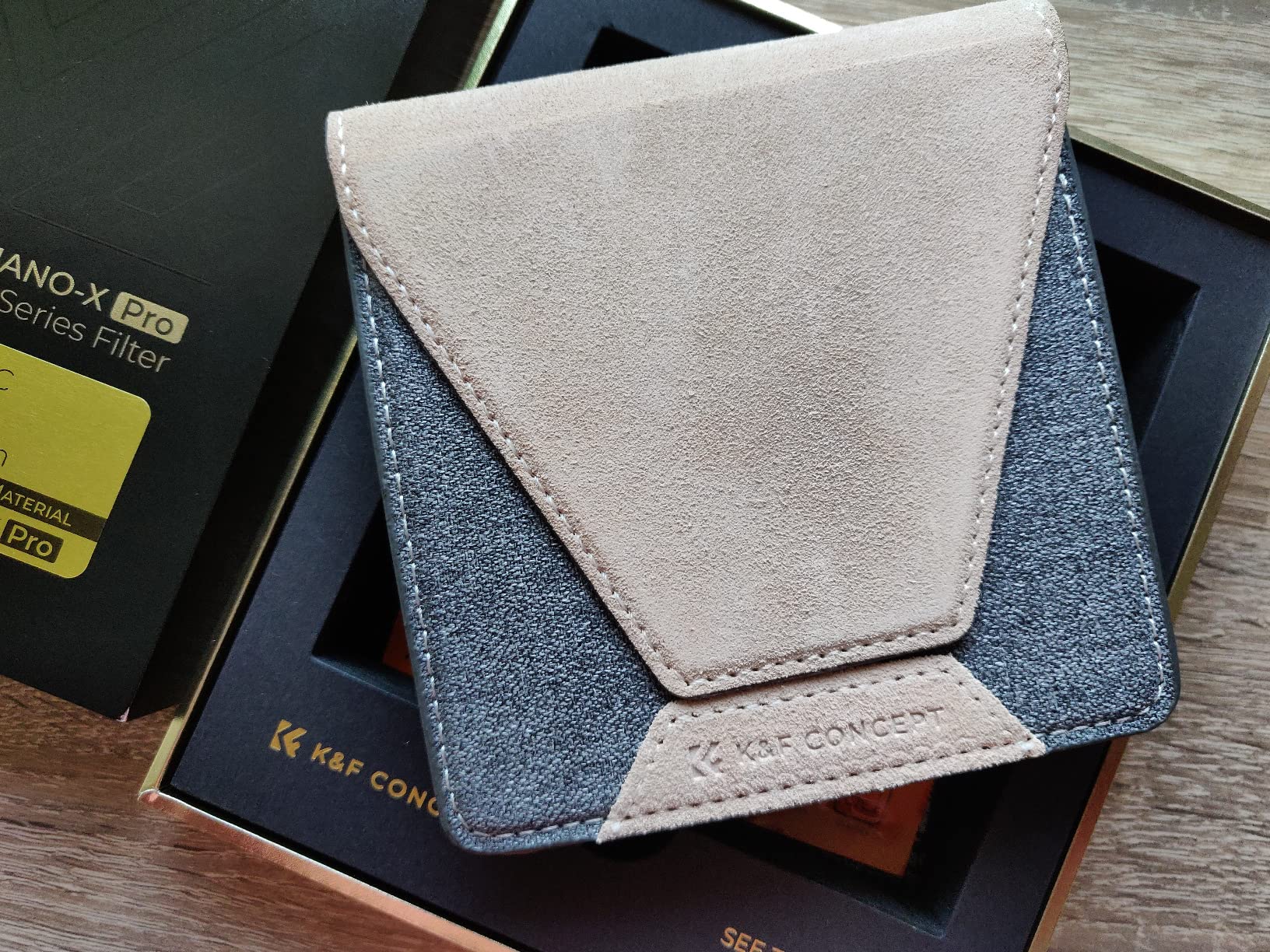 ✅K&F has a new filter system. As always, it comes with a high-quality leather case. The beige material is made of suede, while the body is made of gray fabric. This case securely stores the CPL filter.✅ After unpacking, the ultra-thin frame immediately catches your eye. The weight is clearly noticeable. There's no plastic used here. The brass frame itself is incredibly thin. It screws onto the lens and secures easily. This definitely eliminates dark corners when shooting. There's no wobbling or shaking. The mount is incredibly stable.✅In practice, the product is also impressive. The elimination of polarized light is extremely good. In landscape photography, the difference is clearly noticeable. Additionally, I feel that the color contrast is significantly increased. It's waterproof, scratch-resistant, and features HD resolution. The training in filter photography is very worthwhile.✅ Exquisite craftsmanship in both the lens and the packaging. An ideal gift for all photography enthusiasts!