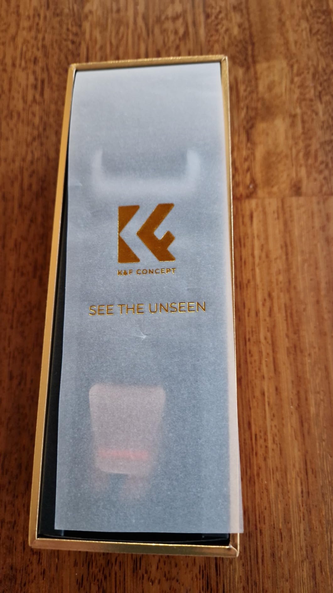 Once we open it, the presentation is exquisite, with a translucent paper that allows us to see the strap that is folded and held by a small cardboard with the K&F logo.