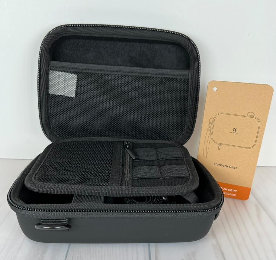 Exceptional quality and great price What do you get?: 1 x K&F Concept Digital Camera Case 1 x Wrist Strap 1 x Shoulder Strap Material Quality (Outer Side) The materials used for the K&F Concept Digital Camera Case were superb and not only looked premium but also felt premium to the touch. Material Quality (Inner Side) Again the inner side of the case was also made to a very high standard with a good level of padding around the camera, whilst maintaining a good quality of the other materials used for the small pouches available on the top of the inner case lid. You have 6 pockets for the inner side of the top lid of the case and the camera section. You can use the divider to separate the lower inner camera compartment to fit 2 action cameras. The zips on the case looked and felt very high quality, and the clips used on both the shoulder strap and wrist strap were strong and very good quality. So can I recommend the K&F Concept Digital Camera Case? ... Most definitely YES, for the price and quality you really can't go wrong, and for those wondering if this will fit a DJI Osmo Pocket 3 then that answer can be answered with a yes. 5 out of 5 very easy stats from me... Great action camera case
