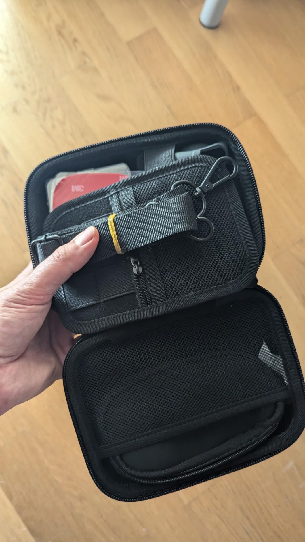 bought the bag for my GoPro 12 and I am really happy with it. The bag is just the right size to keep my GoPro and everything I need safe and tidy. The hard shell design is very robust and offers excellent protection against shocks and moisture. The soft inner lining ensures that everything is well protected and does not get scratched. I find the mesh and elastic bands particularly practical, which ensure that everything stays in place. What I also find great are the different ways to carry it. You can easily wear the bag on the wristband or use the shoulder strap. Perfect for when you are on the go. The design is chic and the bag fits easily into my backpack or a larger bag. At the time of my order, the price was $15.99. For the price, you really get a lot to offer here. If you are looking for a sturdy and practical bag for your camera and accessories, I can only recommend this one.