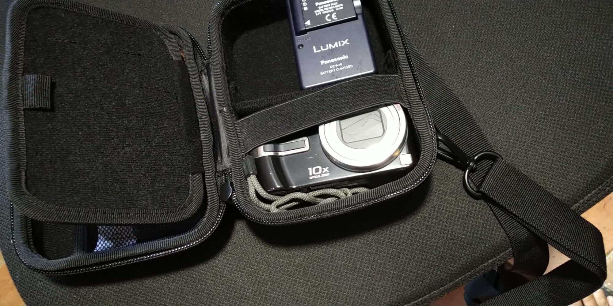 The case is well finished and of excellent quality. It is quite rigid and is equipped with three compartments: one compartment, the one with the largest capacity, is intended for the camera and another is equipped with an elastic strap to ensure that the camera adheres to it, protecting it from accidental falls; another compartment is equipped with a net and is useful for storing cables, spare batteries, other accessories; then there is a dividing "wall" between the two compartments, which I have also defined as a "compartment", because it is equipped on one side to accommodate thin accessories, such as memory cards, USB sticks, (short) cables. In my case, I finally use it for my old Panasonic Lumix series compact, with its charger and two spare batteries. The case is equipped with a shoulder strap and, alternatively, a wrist strap: I don't think the latter is up to the quality of the case and the strap, or in any case it seems too small compared to the consistency of the case combined with the weight of what it contains. However, this does not affect my judgment, considering it a superfluous accessory, which is therefore very positive. I think the price is right (20 euros at the time of this review). Excellent.