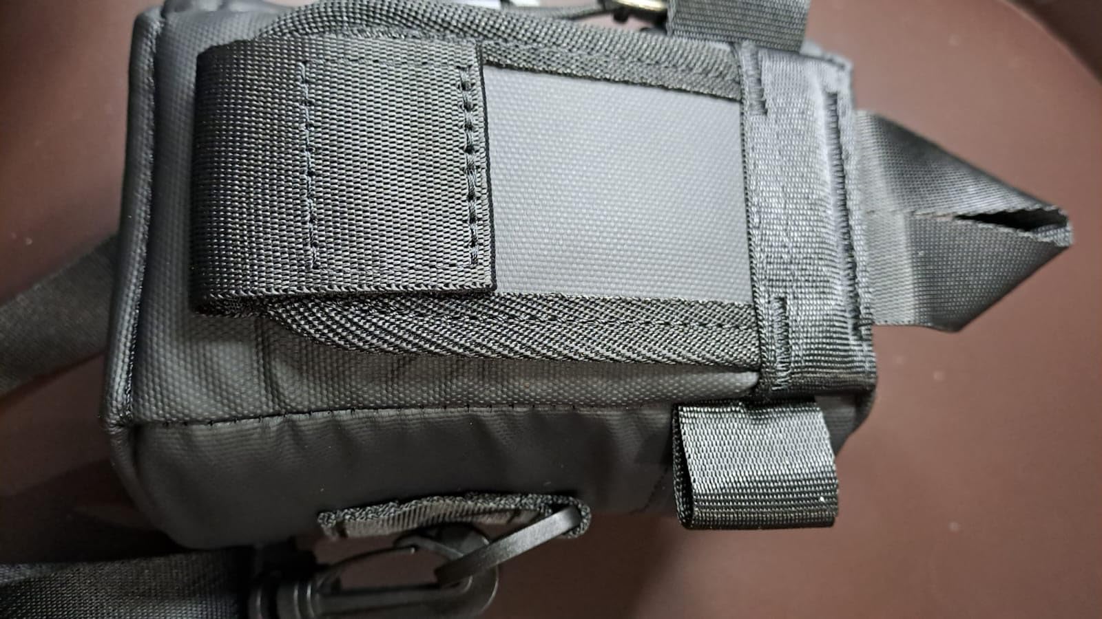 The case is made of very good quality materials. It has a waterproof coating and zippers that are also waterproof. In addition, the case has a thick and soft protective layer of approximately 1-1.5 cm, giving it a good chance of surviving if you accidentally fall. It also has several loops for attaching it to a belt, backpack or a carabiner. I liked that the loop for attaching it to the belt is not continuous, but can be opened, allowing me to fix it wherever I want. In general, all the hardware is of very good quality.