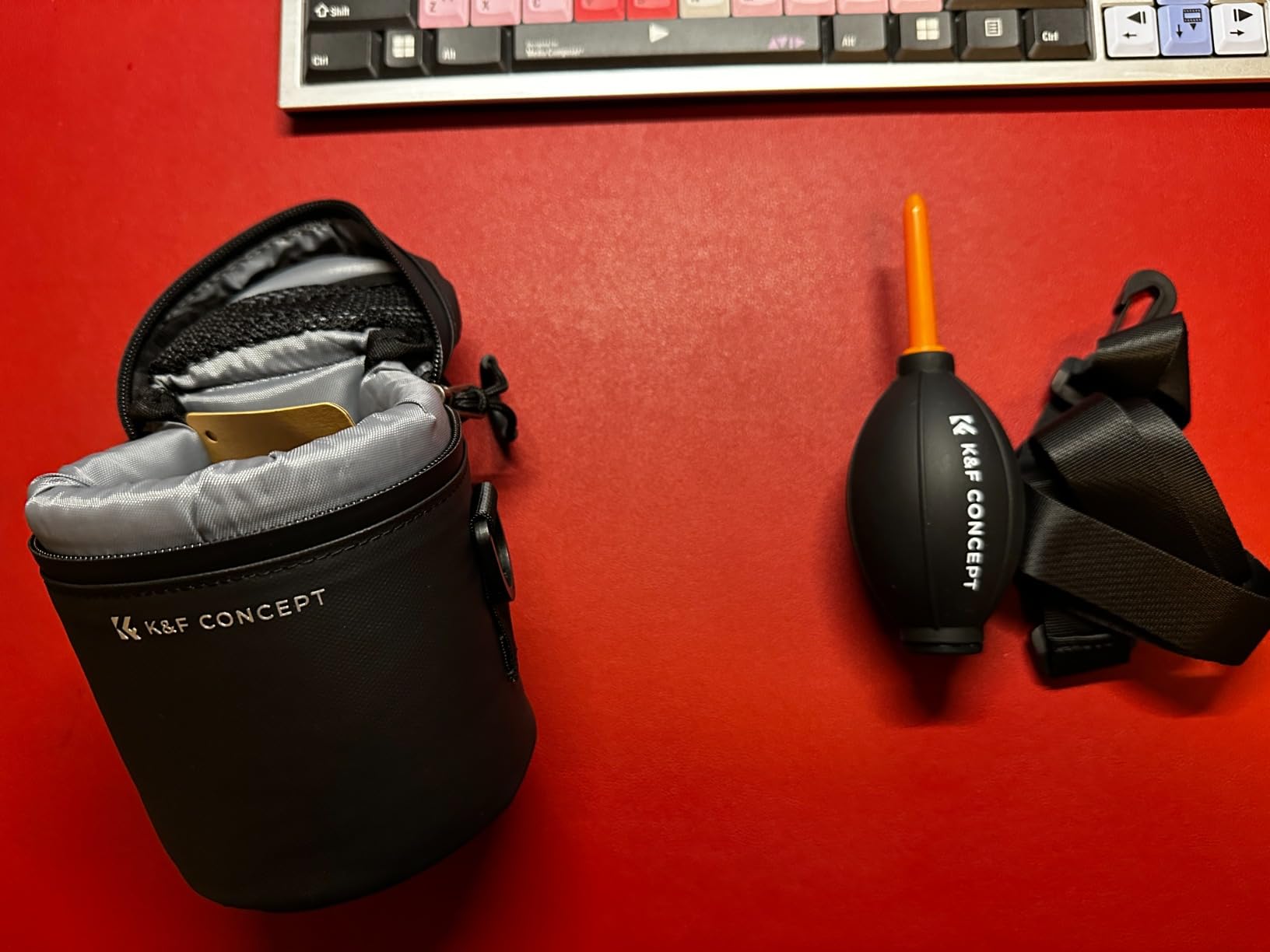 Personally, I will keep it in the photo bag, but the bag offers different modes of transport, including shoulder strap use, if you want there is also the possibility of attaching it with the comfortable velcro loops to the belt or to hang it when working outdoors. In the package a convenient air blower, ideal for removing dust from the lens and keeping it clean in any situation.