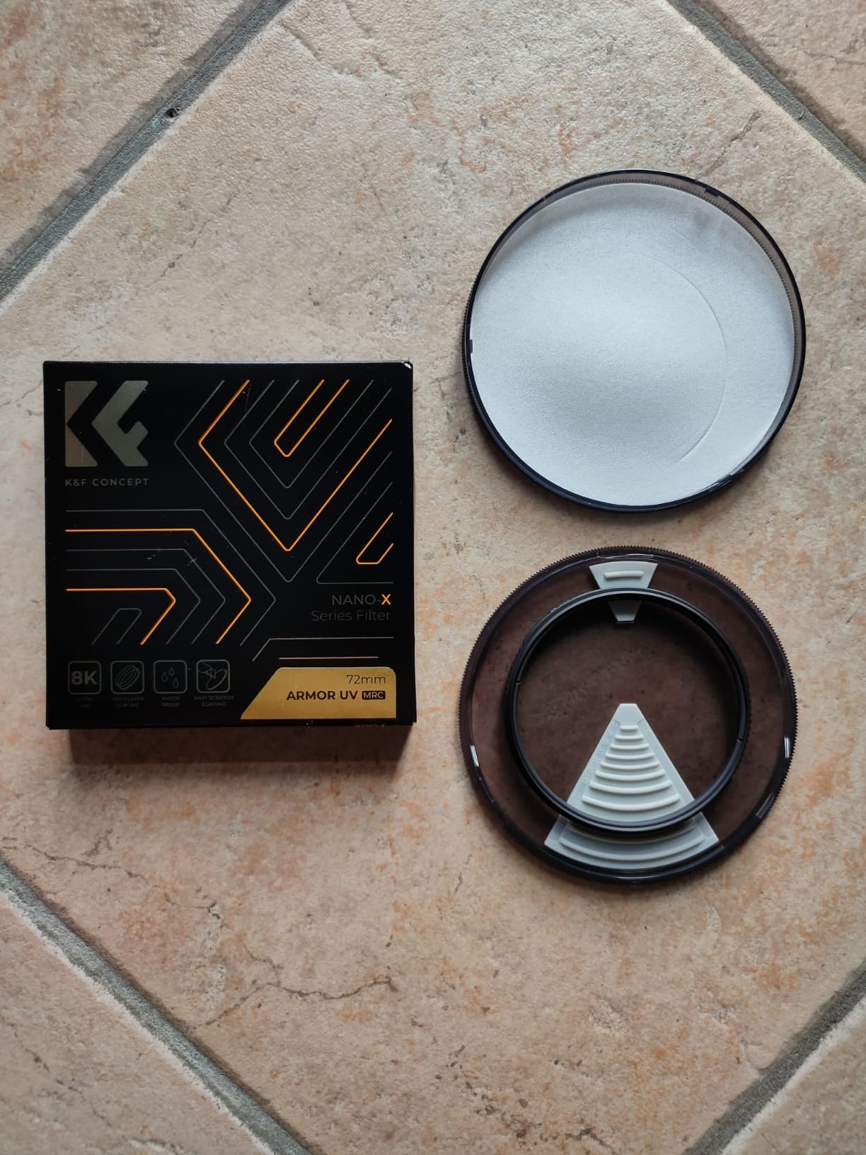 These days, these types of UV filters aren't as useful as they once were with SLR cameras. However, they can be a great ally, both for protecting your lenses and even for creative effects. In this case, we're looking at a K&F product, a brand that never disappoints when it comes to quality and price. I'm a regular user of this brand's products: tripods, bags, backpacks, cleaners, etc. And, with a few exceptions, I've always been very satisfied with everything I've purchased or, as in this case, tried. I like to be transparent to share my experience, since, for example, I've tried tripods from this brand that, for their price, didn't seem like a good option. I'll tell you more about them. One of the aspects I liked most is the packaging, which offers plenty of protection, as well as a screw-on case for transport. Many of these filters come in small bags, and if your backpack is full of gear or you're a bit messy, one day they could turn up broken. Therefore, this is a very positive point, since, in addition to the filter, you get its case. I feel like I'm repeating myself, but I think it's important to emphasize that in more modern cameras, this type of UV filter isn't very useful, and many will say that adding it is an "insult" to your lens, especially if it's of good quality, since, although neutral, it adds an extra layer. However, as I mentioned, protection is still important. With this type of filter, you add an extra layer that, if you use the camera in higher-risk environments, will help prevent scratching or breaking the glass of your lens, since the filter will be damaged first. When I mentioned that it can be a creative ally, in my case, I don't consider it for now, but I know of photographers who use these filters, which are not ND, and therefore don't affect the light input. In colloquial terms, they would be like simple glass, which can be broken to create a shattered glass effect in photographs. That said, for this price and quality, I think I'd look for another filter for that type of action