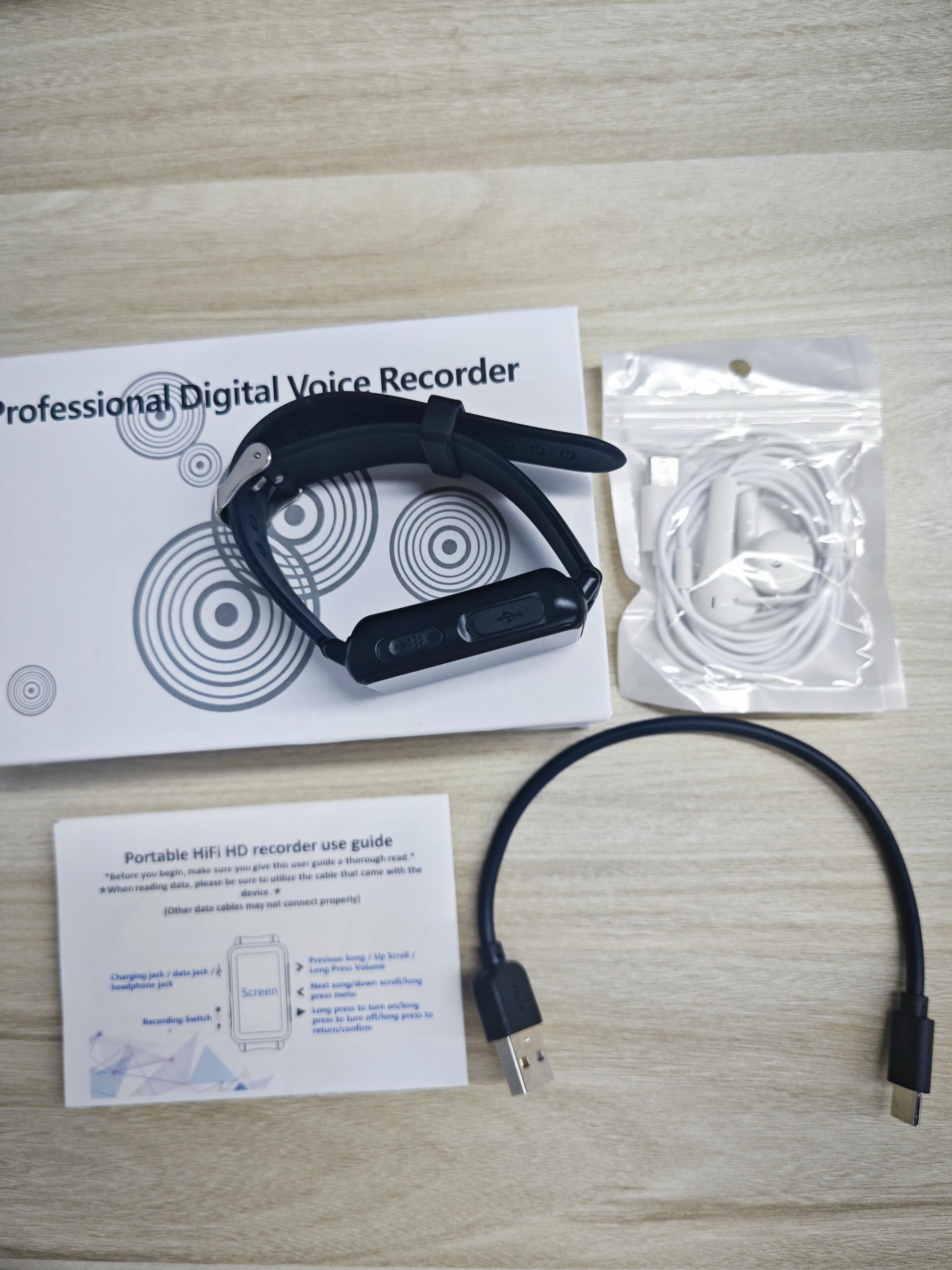 The wristband shaped voice recorder is really easy to operate. The band itself has a couple of control buttons: Slide up the button to strat Recording. Slide down the button to SAVE, or plugging in the USB-c control panel will end the recording. The wired control panel has more detailed functions and can adjust system settings. I tested by recording for several hours in a single session, and the whole process is uninterrupted and the sound is super clear. This one is really good for note taking, meeting minutes, or just for personal memos. There is a really nice feature called Voice Activation, if you turn it on, it will not record silent or whispered segments. This is quite useful when turned on, it saves a lot of memory space and with that you don’t risk losing any moment. Overall this recorder is super convenient, easy to operate and has excellent sound quality.