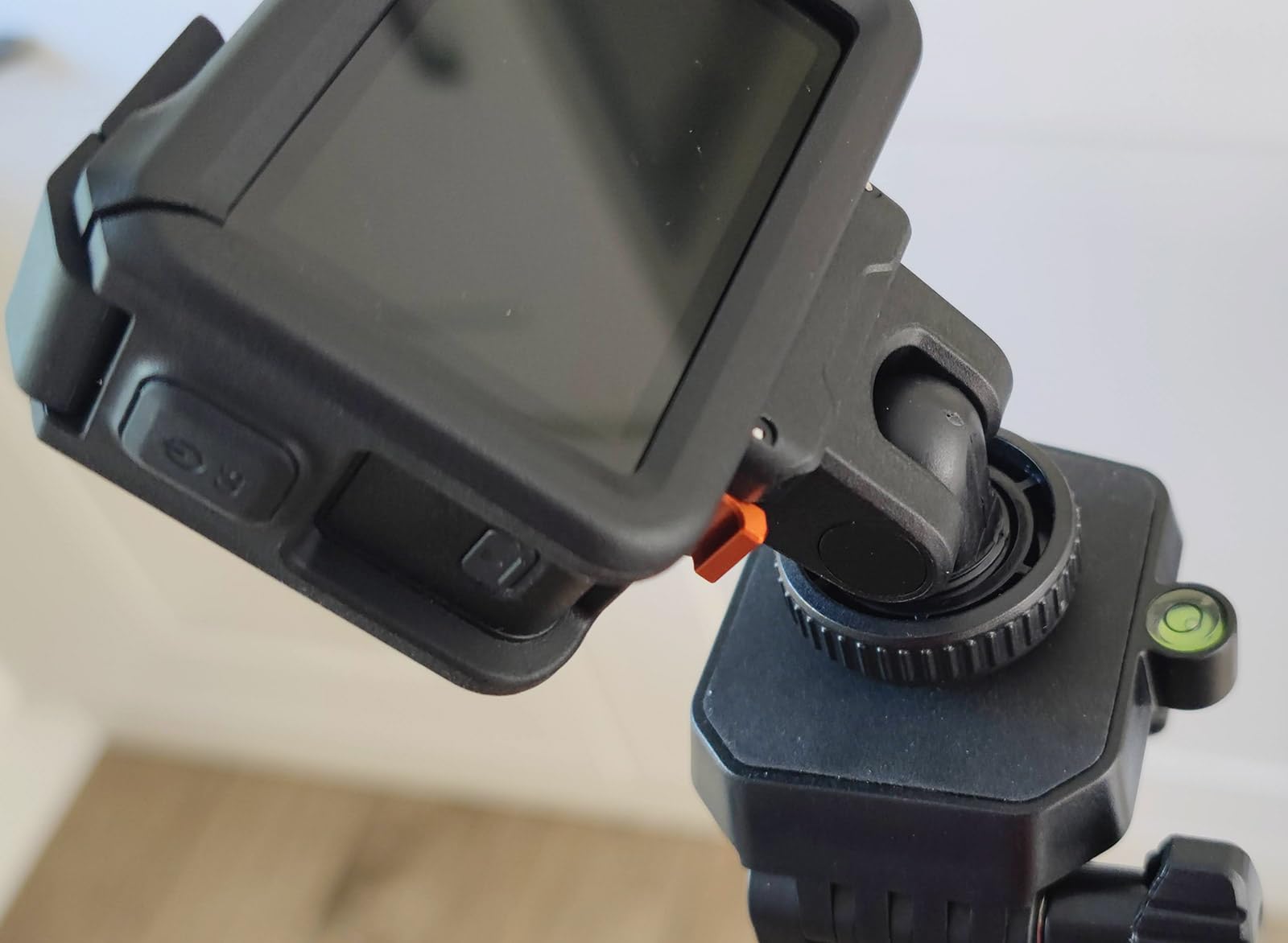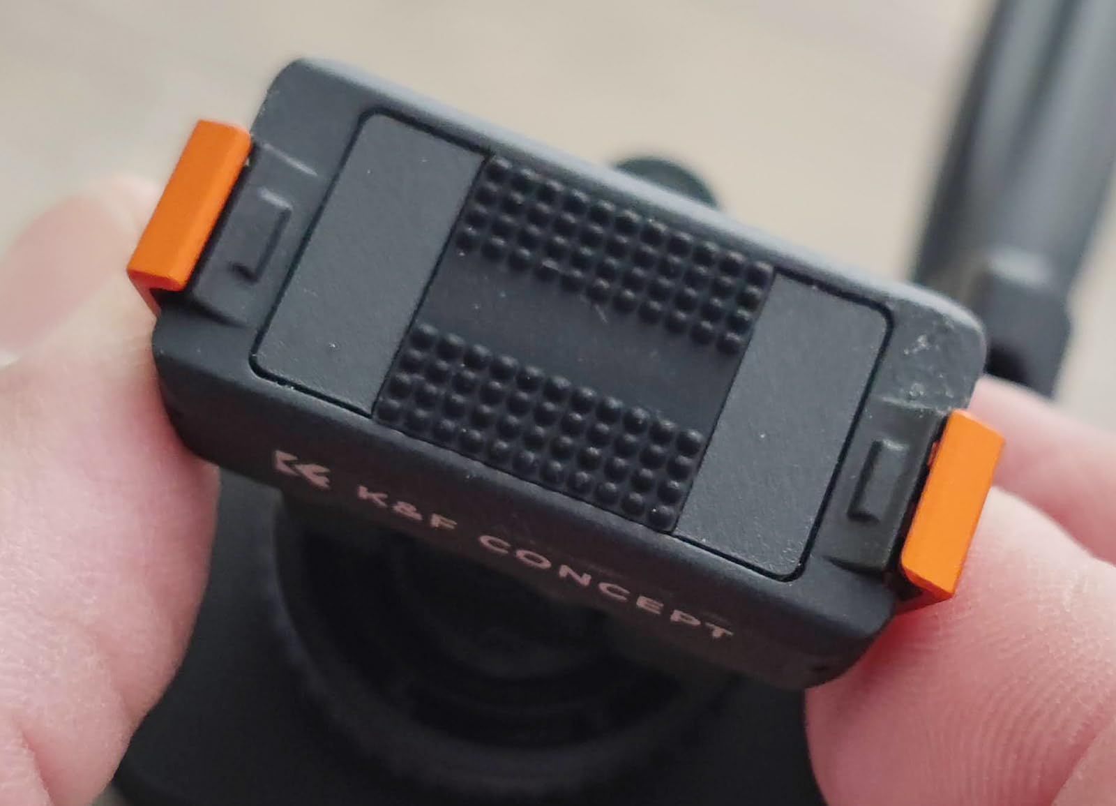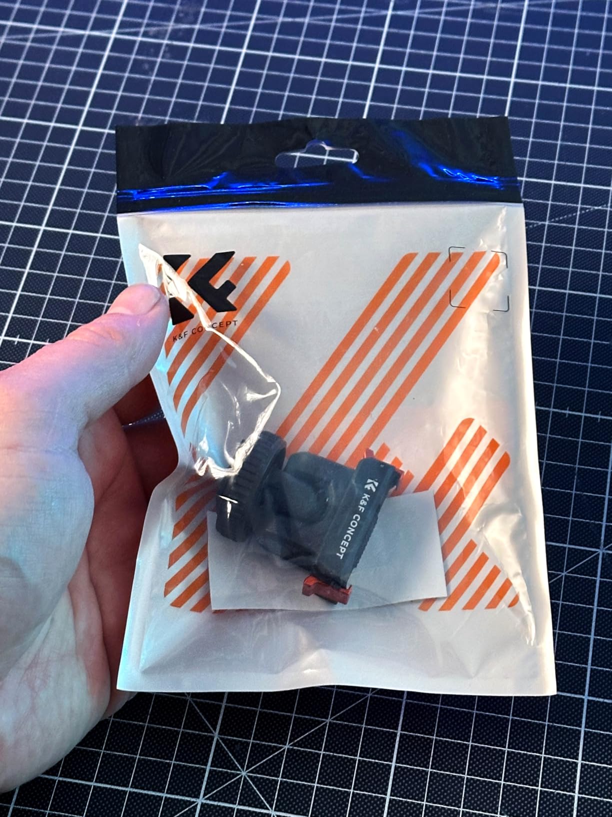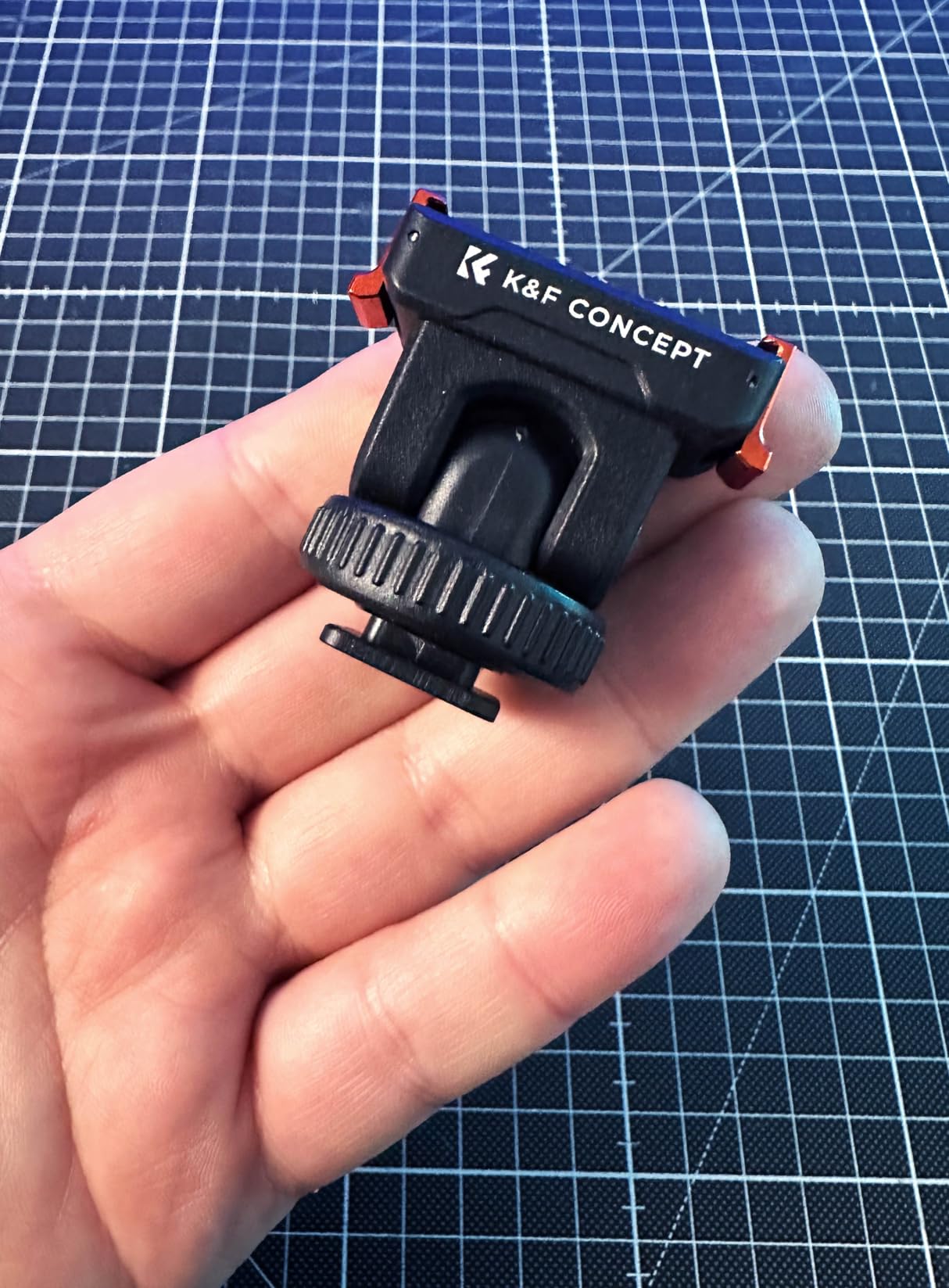 This mounting for the DJI Osmo action cameras from K&F Concept comes in a simple plastic window pouch along with a small product information sheet.The mount attaches to the magnetic clip on the action camera or the plastic frame if you have that installed, and gives the option to mount the camera on either a camera's or accessory's shoe clip, or to bolt it onto a tripod using the standard 1/4-inch thread.The mount has orange aluminium alloy clips either side to latch onto the action camera together with the magnetic clamp. This means it's not reliant on the magnetic properties which often aren't sufficient to hold the camera alone. The clips operate smoothly without too much spring resistance, and hold the camera in place very effectively. There is also a silicone ribbed pad on the base to prevent slippage and provide a little cushioning.The top part of the mount can be tilted forwards and backwards. It only uses friction to hold it at the selected angle, so this pivot point has the potential to wear over time and become looser. There's also no notch feeling to help indicate when the mount is moved back to the vertical position which would be useful.The cold shoe attachment has a clamp ring which can be tightened to keep the mount in place.The 1/4-inch thread on the base is made from brass and has good depth which should accommodate the bolts found on most tripod and other camera clamps.In use with our Action 5 Pro camera the mount snapped into place, held the camera securely, released it readily when the side clips were squeezed, and looked very professional.This mount is well-made and gives some nice extra secure mounting options. We use tripod-mounted cameras quite a bit, so having the Action 5 Pro now able to use them too is a great bonus.