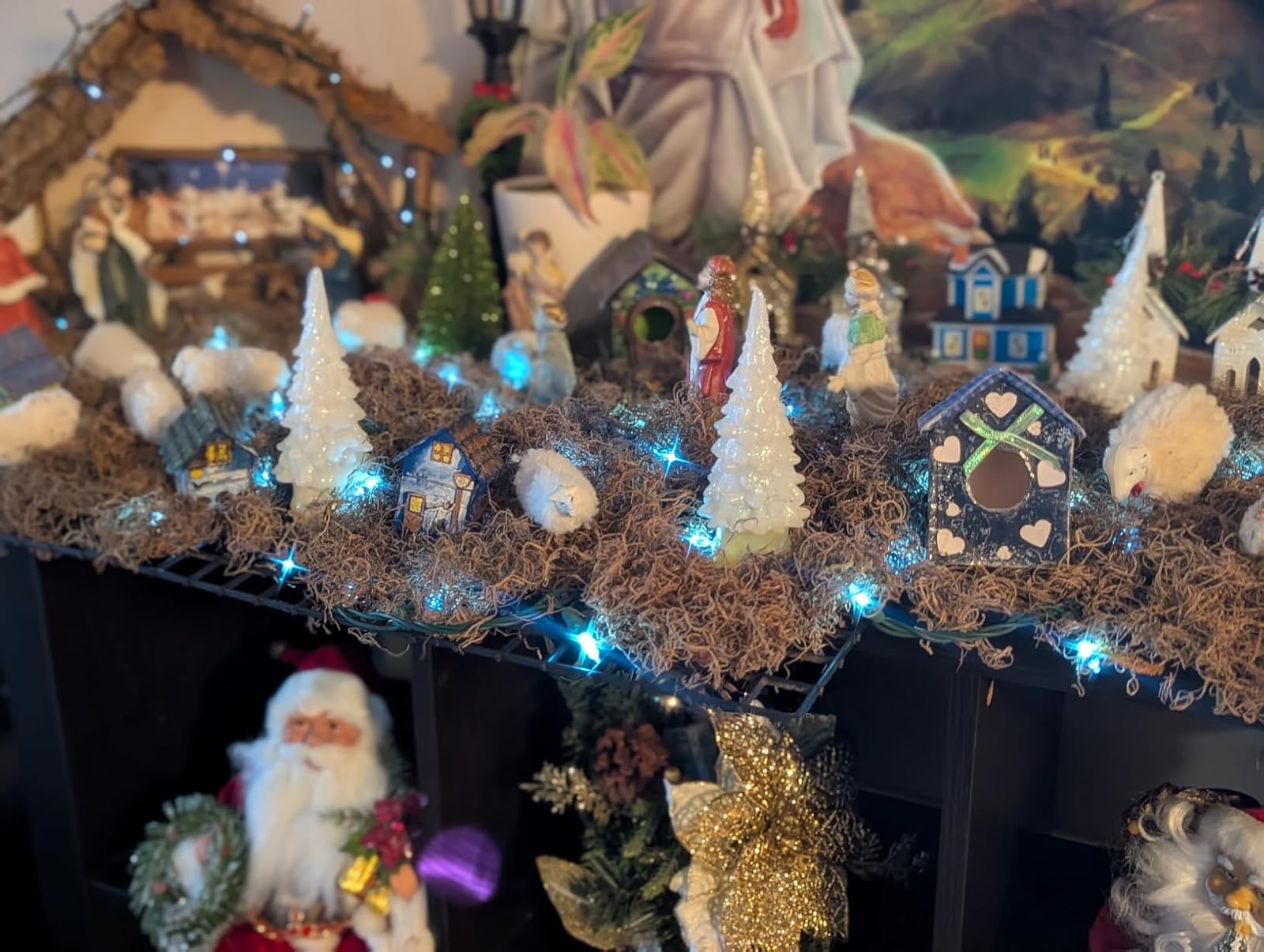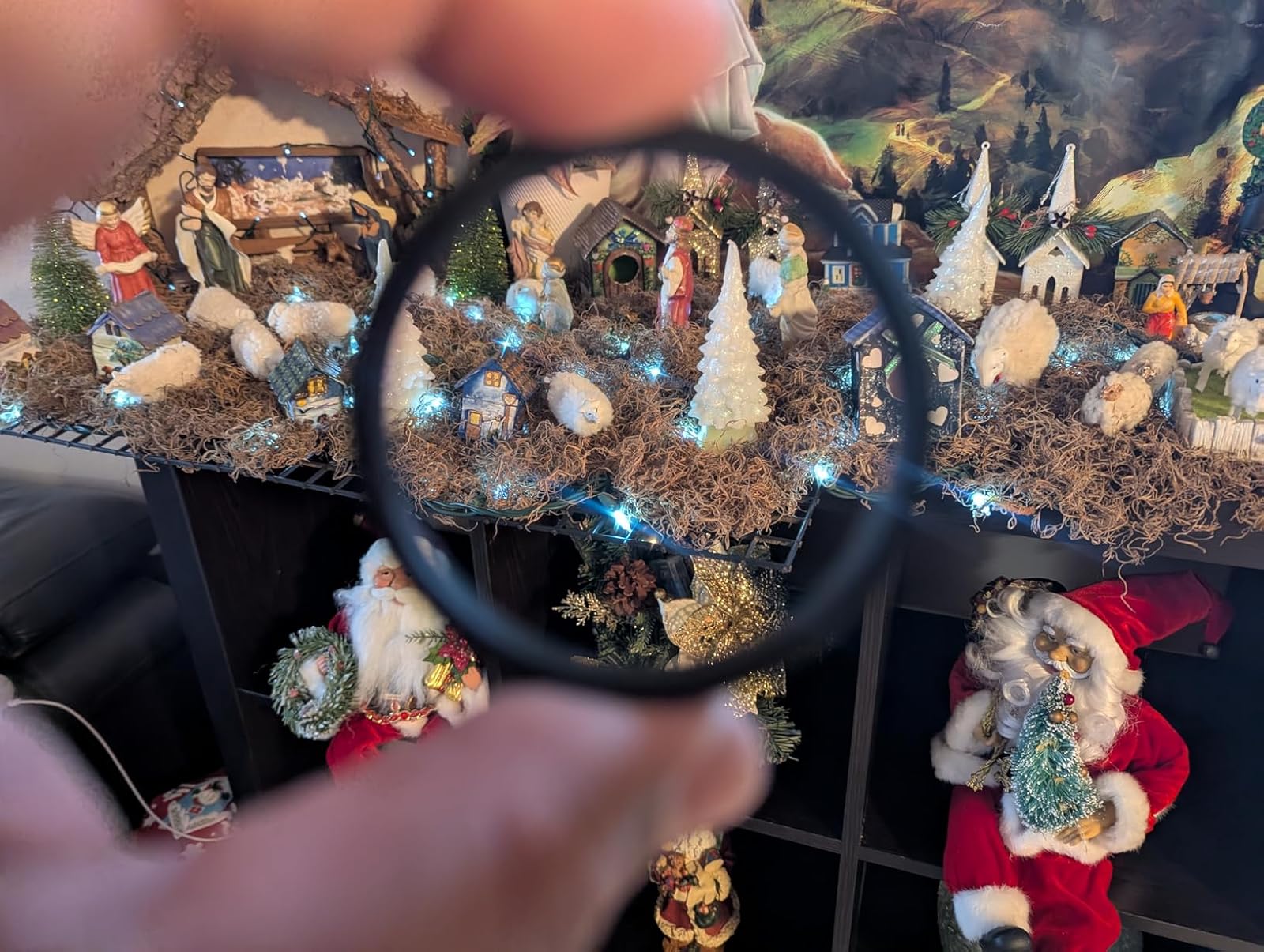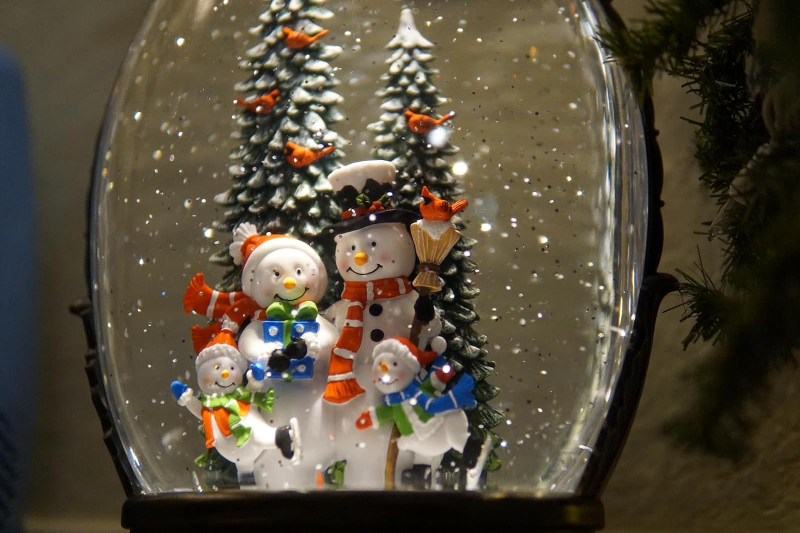 The snowman snowglobe photo shows some of the star effect on the glitter near the cardinal on the broomstick and I didn't see anywhere in the photo where the triangle pattern appeared. Given the relatively smaller size of the bokeh, I think there's just not any single color spot big enough in that photo to show the triangle pattern.
