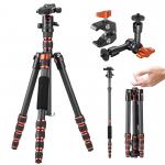 60" Carbon Fiber Camera Tripod,Super Lightweight Compact Travel Tripod with 360° Ball Head,Quick Release Plate,Detachable Monopod 8KG Load Capacity and 6" Magic Arm with Super Clamp Set