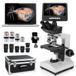 Darkfield Microscope with 7in Screen, 40X-2500X Magnification, 5MP Camera for Photos & Videos, 195 Achromatic Objectives, Double-layer Mechanical Stage, Kentfaith